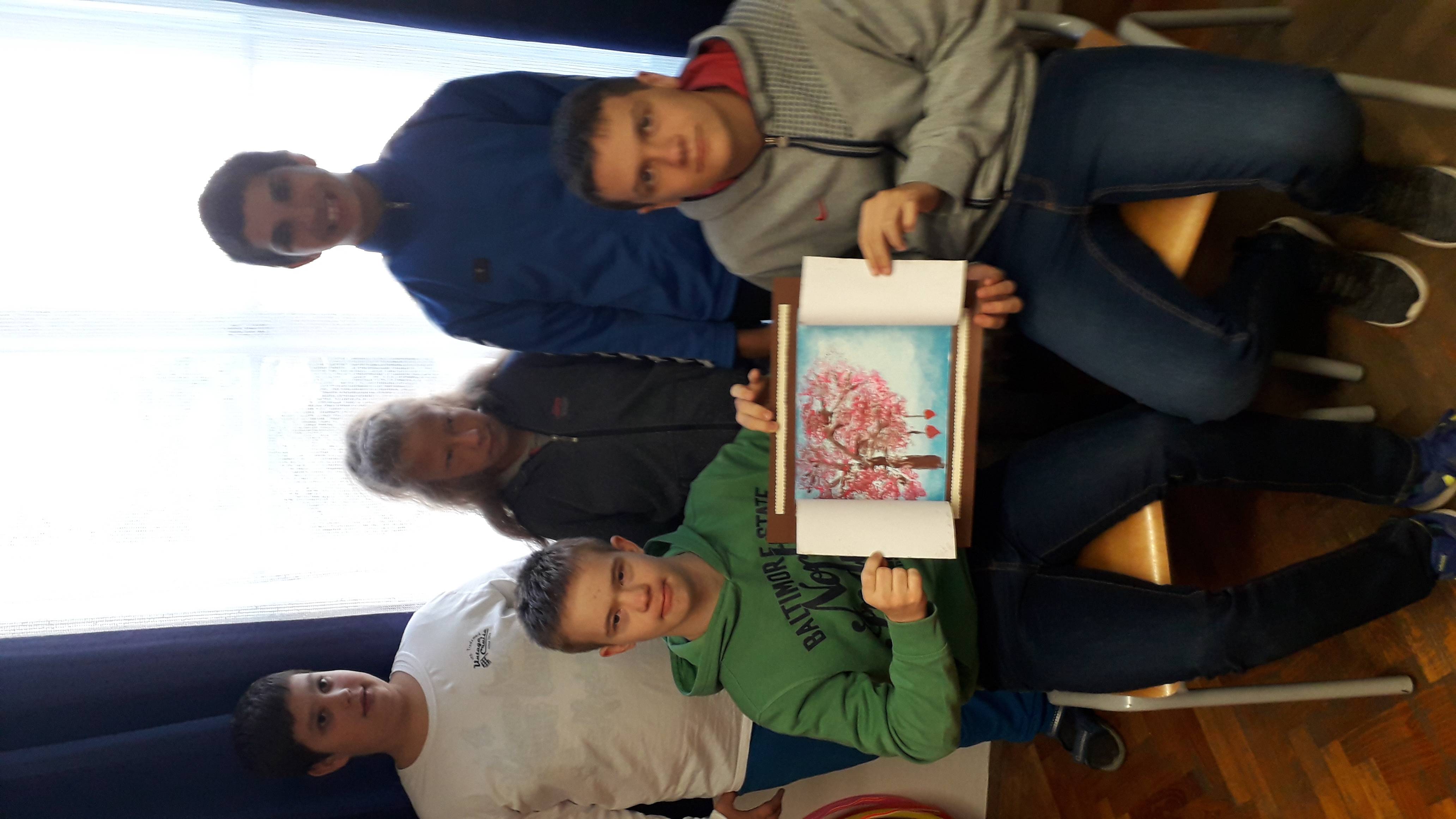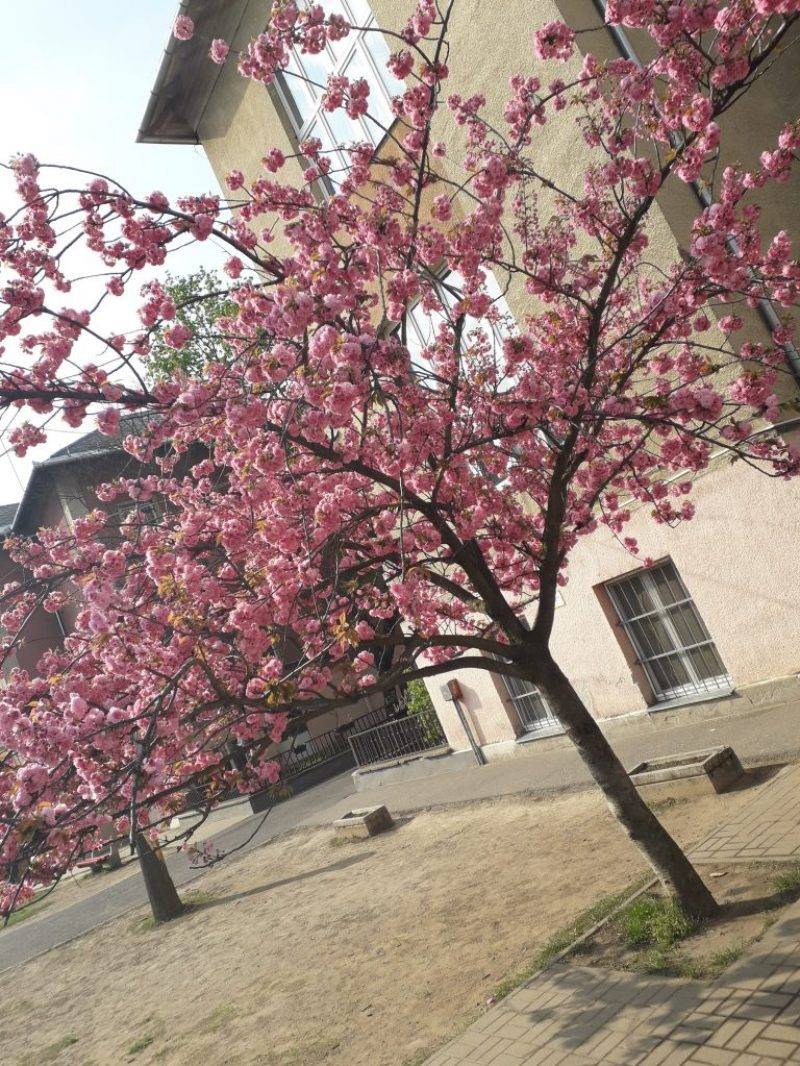 A csoportunk értelmileg akadályozott gyerekekből áll, akik 8. osztályosok. Mi abban a szerencsés helyzetben vagyunk, hogy a tantermünk ablaka arra a természeti csodára nyílik, amit ablakkeretbe helyeztünk. Minden évben lenyűgőz minket a virágzás látványa, mindezért hálásak lehetünk.:)