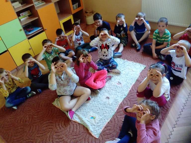 A mesetáskával és meseszőnyeggel vezettem be a gyermekeket a Boldogerdő-Kerekerdő varázslatos világába. Bebarangoltuk a Hála patak, Optimista rét, Barátság házikó, Jótett tisztás, Célok hídja, Megküzdés hegység, Apró örömök szigete, Megbocsátás erdeje és a Testmozgás útja rejtelmes és szeretett útvonalát. Varázsszemüveggel összegyűjtöttük a gyermeki léleknek szép sárga, piros, kék, zöld, fehér, barna, lila, narancs és fekete gyöngyöket. A Szeretet kapun minden gyermek áthaladt, ahol társaik kedves tulajdonságaival üdvözölték a barangolót. A Boldogságfűzér láncait egyéniségüket, szépérzéküket kifejezve színezék ki. Rajzaikban tovább folytatták a történetet. Egy kislány a Boldogság templomát is megrajzolta pompázatos motívumokkal ékesítve. A Boldogság a gyermeki kacajban, vidámságban rejtőzik, mely a Csicsergő csoport fontos lételeme.