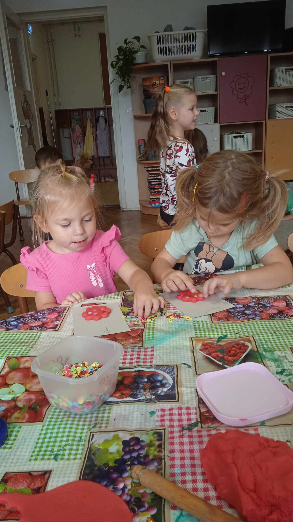 A szeptember a hála gyakorlásának hónapja. Csoportunkba sok új kiscsoportos érkezett, így a hála fogalmának megismertetésével kellett elsősorban foglalkoznunk. A négy nagy és három középső csoportos gyermek már tudott mesélni a kicsiknek a hála fogalmáról, majd sokat gyakoroltuk a kicsikkel is, hogy miért lehetünk hálásak egymásnak az óvoda dolgozóinak, szüleinknek, közeli és távoli ismerőseinknek. A hála gyakrolása közben megbeszéltük azt is, hogy miért lehetünk hálásak a szüleinknek, majd hála süteményeket készítettünk só liszt gyurmából melyeket a gyermekek hazavittek anyukájuknak és apukájuknak. A süteményeket az újrahasznosítás jegyében régi füzet lapokon szárítottunk meg, hogy a kicsiknek is bemutassuk a környezettudatosság fonotosságát, óvodánk kiemelt feladatát.