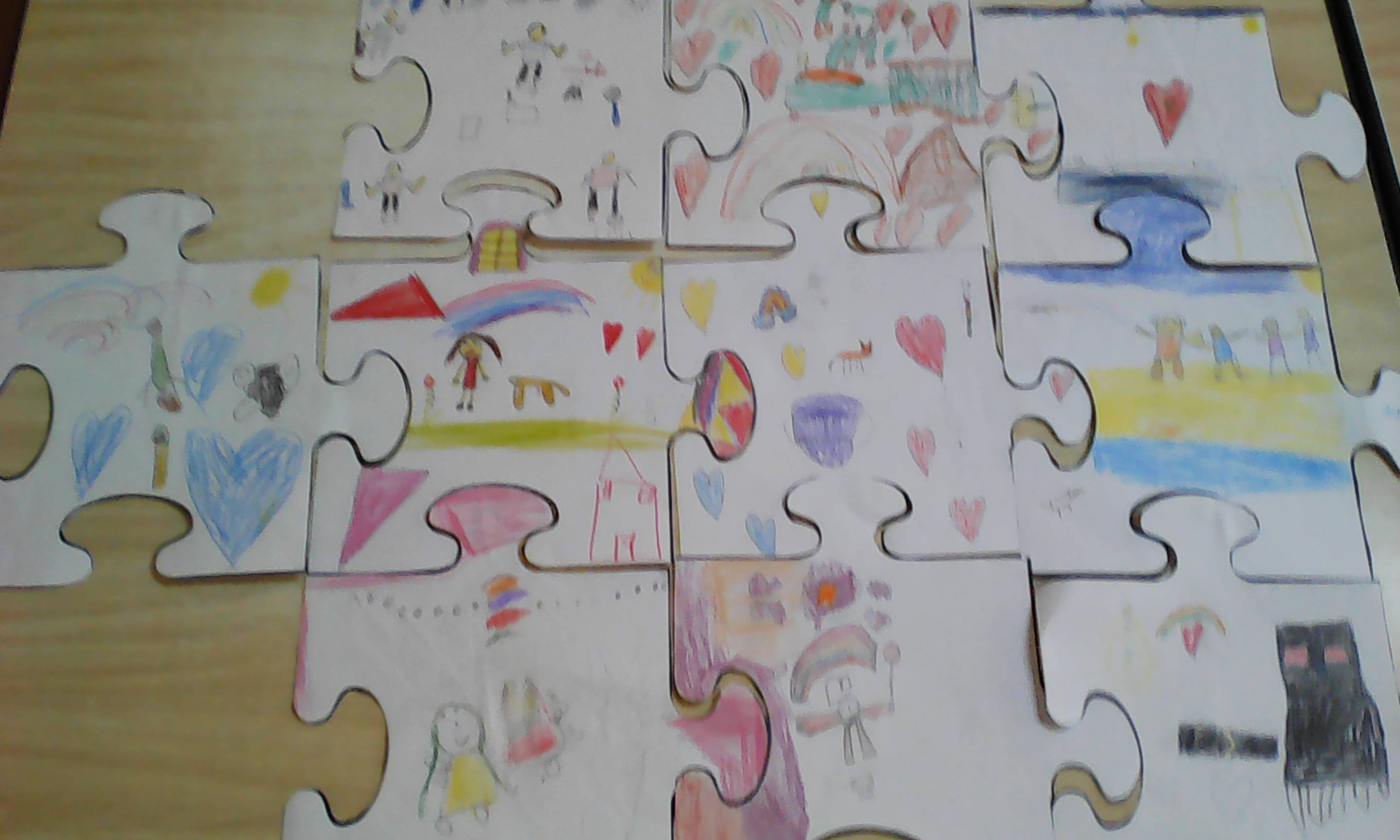 A képeken kis csapatom első ismerkedései láthatóak a Boldogságóra Programmal. Kerestük a választ arra, hogy mi a boldogság, így születtek meg a boldogság-puzzle-ek. A hála témakör feldolgozása során kitekintettünk (vagy betekintettünk? ) a szívünk ablakán, hogy megtaláljuk a hálára érdemes dolgokat. A foglalkozások nagyon jó hangulatban teltek és megtanultuk az első dalt is, Szép nap, ölelj most át!