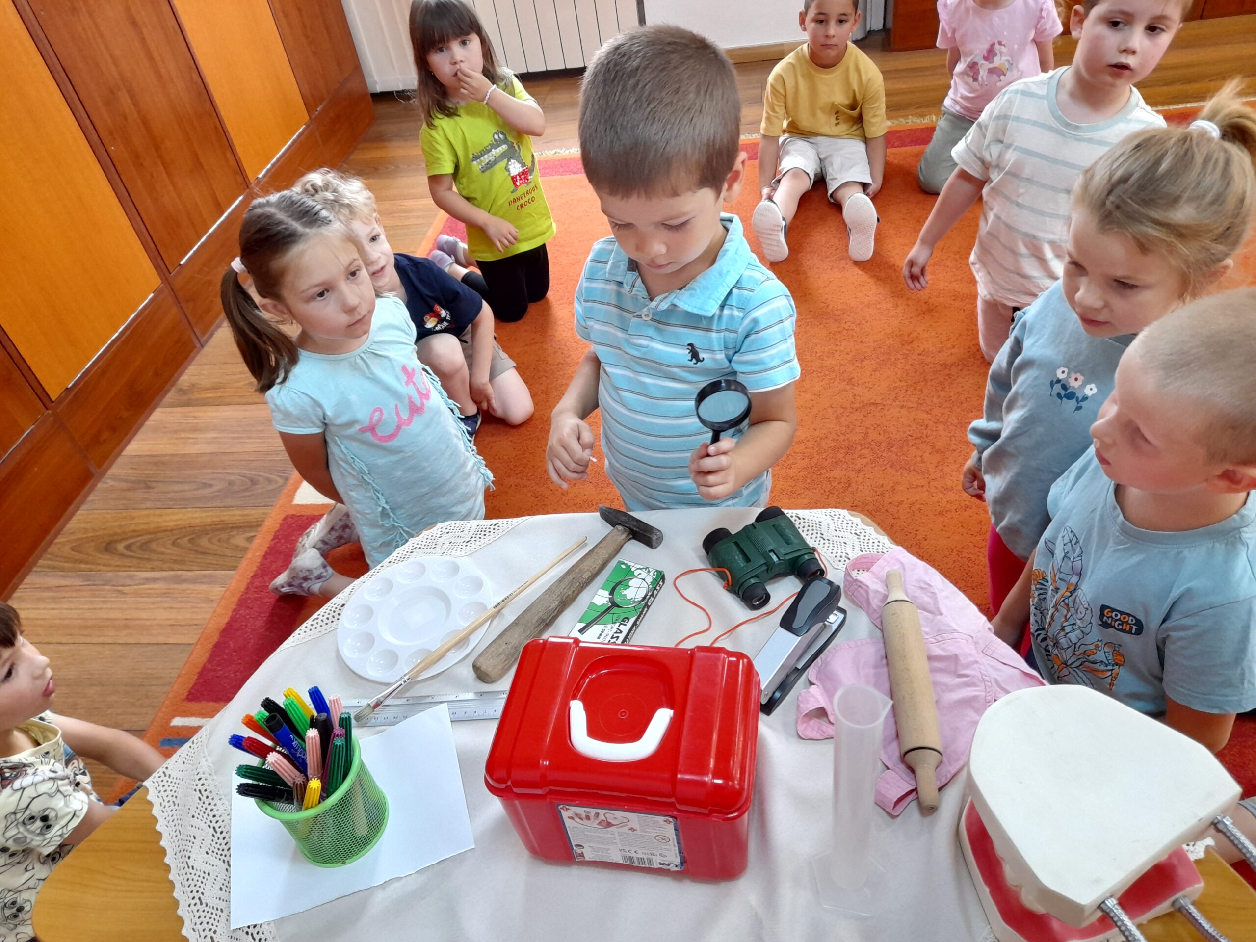 – tárgyakat helyeztem el egy asztalom, amelyek közül a gyerekek tetszés szerint választottak