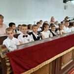 Az első osztályosoknak én voltam az óvónénije, ezért nagycsoportban már tartottam a Boldogságórákat. Azért is tettem, hogy majd első osztályban könnyebbé tudjam tenni az óvoda-iskola átmenetet Boldogságórákkal. A mesterprogramomnak a fő célja, hogy segítsem a gyermekek beilleszkedését az iskolába. Elkezdődött a tanév. Az évnyitón már ott voltam a Református Templomban és egy kis ajándékkal kedveskedtem a még kicsit bátortalan elsősöknek. Ahogy odaérkeztem, a gyerekek örömmel köszöntek. Odaültem közéjük, hogy ezzel is segítsem, oldjam a feszültséget. Így már nagyobb biztonságban érezték magukat a volt nagycsoportosaim. Az Igazgató Úrral és a tanító nénikkel megbeszéltem, hogy ott fogom átadni a gyermekeknek a kitűzőket, amire rá van írva, hogy: „Pá ovi, irány az iskola!” Egy kisfiú és egy kislány megy rajta iskolatáskával a hátán. Nagyon büszkén viselték a gyermekek, amíg hallgatták az igazgató bácsi megnyitó beszédét. Úgy láttam, hogy segített a gyermekeknek ez a kis ajándék abban, hogy ne szorongjanak annyira, hogy biztassuk őket az iskolás életre. Az egyik kisfiú megkérdezte, hogy holnap te is jössz, ott leszel az iskolában? Megnyugtattam, hogy jó kezekben lesznek a tanító nénikkel, akik szintén velem együtt várták a gyermekeket, ahogyan gyülekeztek a templomban.