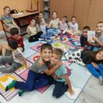 A végén kapott minden gyermek egy rajzlapot, amire rá kellett rajzolniuk a kezüket HÁLA KÉZ, valamint a HÁLA VIRÁGOT is. Nagyon ügyesen megcsinálták, hiszen az óvodában is készítettünk már hasonlót. Minden gyermek elővette a tolltartóját és a színes ceruzákkal szépen kiszínezték. Egy kislánynak el volt törve a bal keze, ezért segítettem neki a keze körbe rajzolásában, amiért nagyon hálás volt nekem. Amikor elkészültek, többen nekem szerették volna adni a gyönyörű rajzokat. Megkértem őket, hogy vigyék haza inkább és mutassák meg a szüleiknek és adják oda hálájuk jeléül, tegyék ki otthon olyan helyre, ahol bármikor láthatják.
