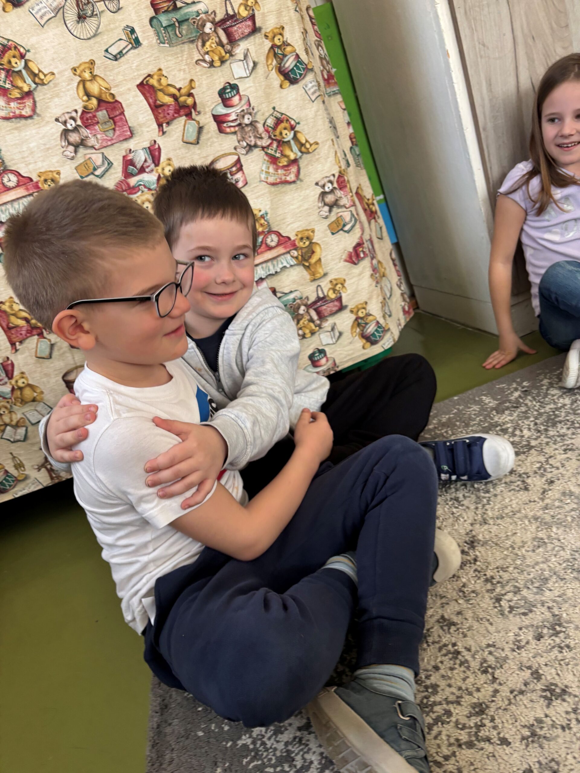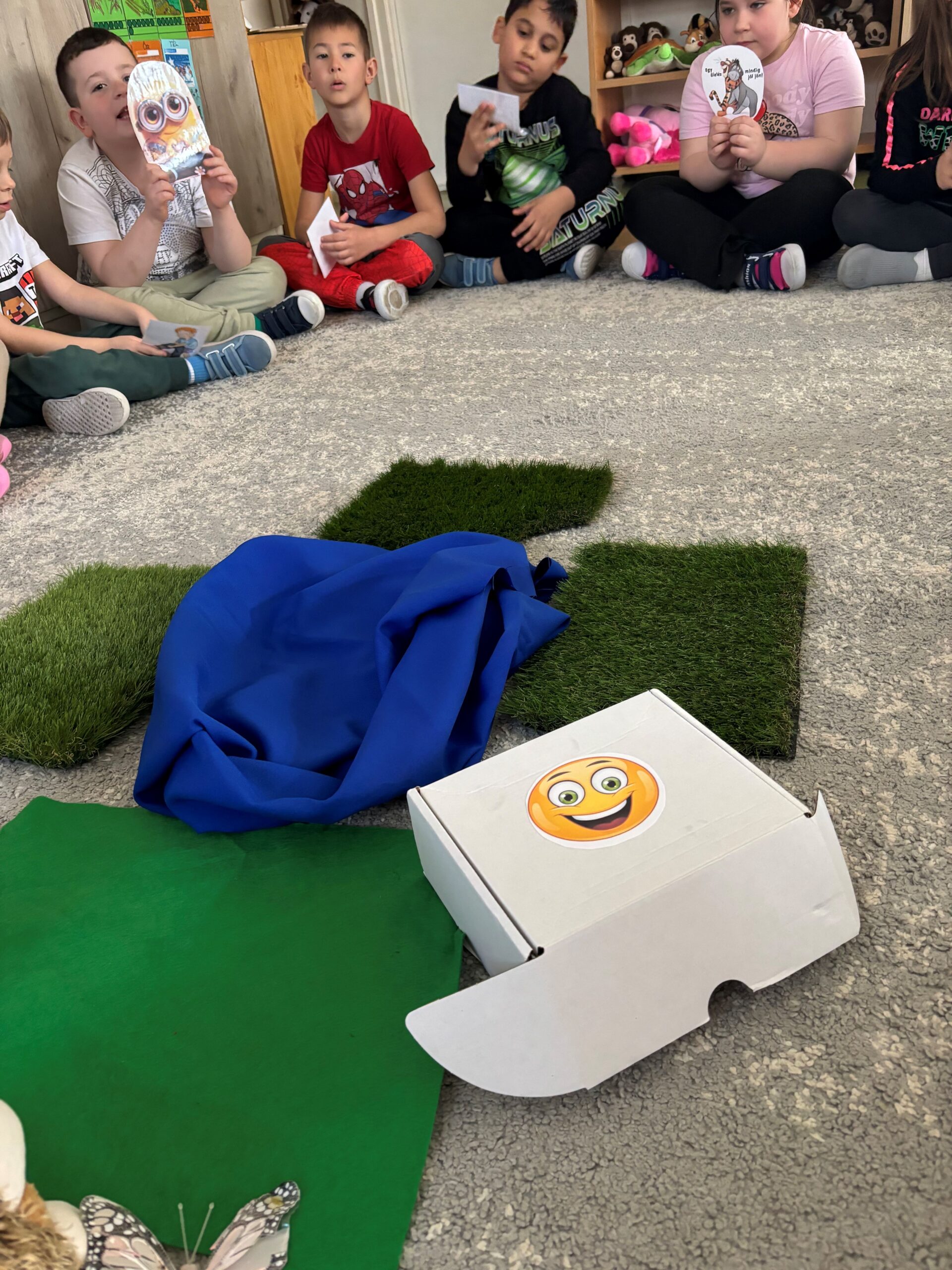 Ezután egy „örömdobozt” vettem elő, amely különböző képeket tartalmazott (pl. pocsolya, fagyi, anya ölelése, napsütés, labda). A gyermekek egy-egy képet húztak, majd elmondták, mit látnak rajta, és milyen érzéseket vált ki belőlük.