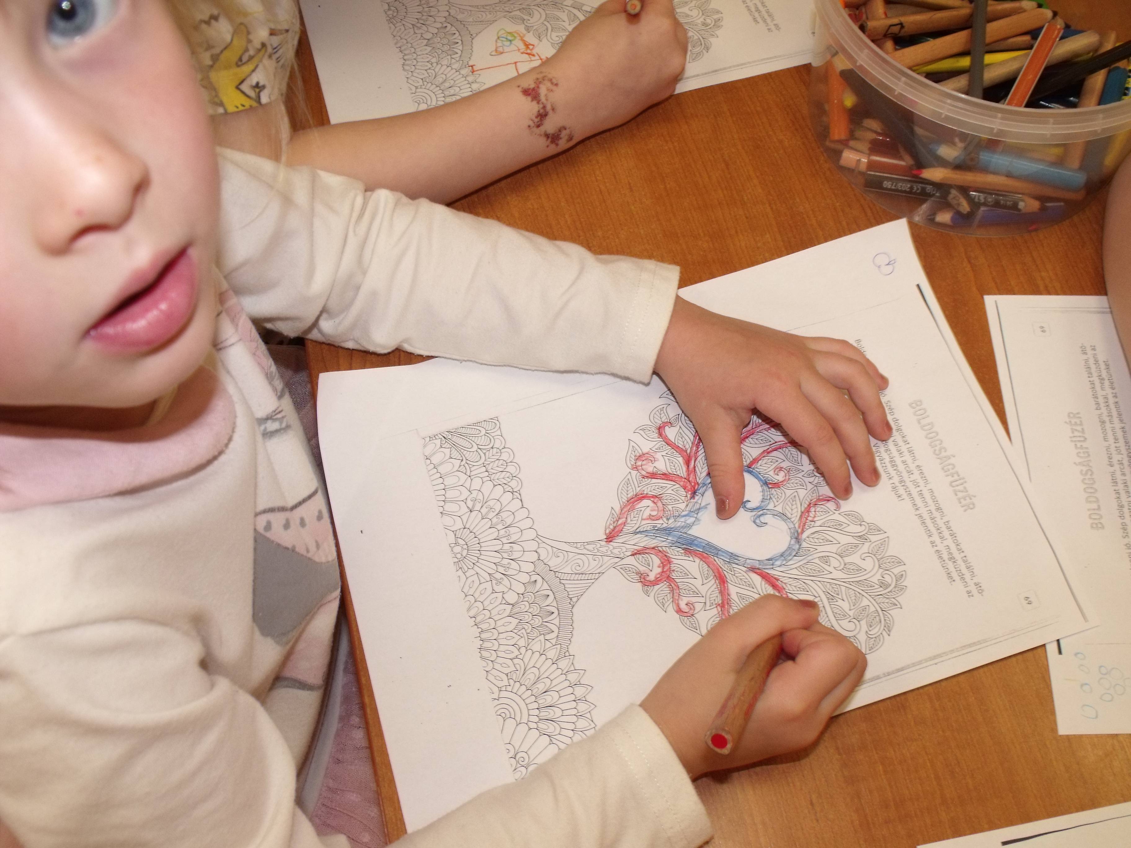 A témát a könyvben szereplő szív kiszínezésével zártam le. A színezőt otthon kellett befejezni a szülőkkel. Megkértem a gyerekeket, hogy beszélgessenek a családban arról, hogy mi teszi őket boldoggá, s boldogtalanná. Mi teszi őket boldoggá, ill. boldogtalanná.