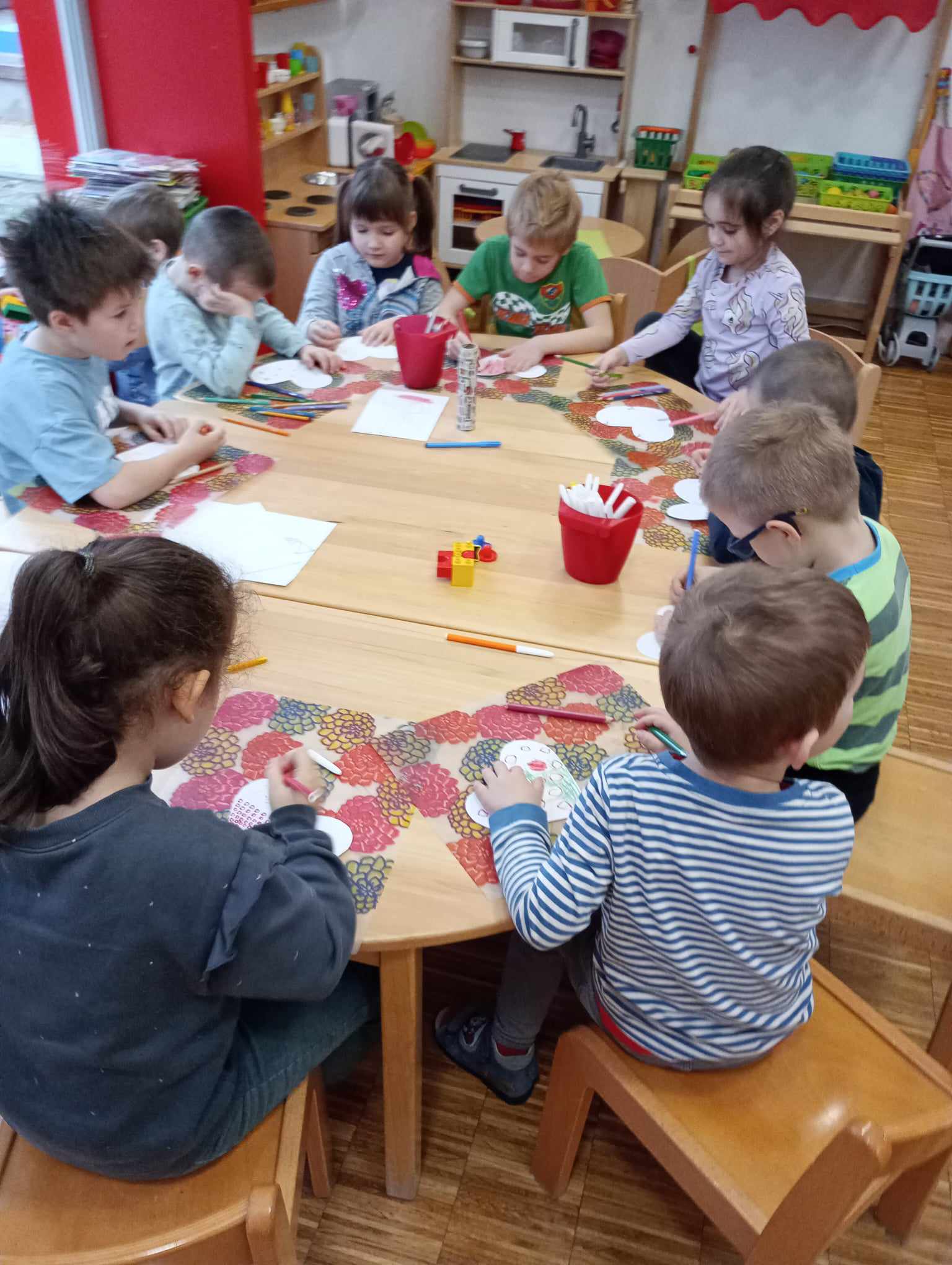 Szívek színezése, díszítése és a kis fadobozba a barátnak átadása mint egy ajándékot, meglepetést.