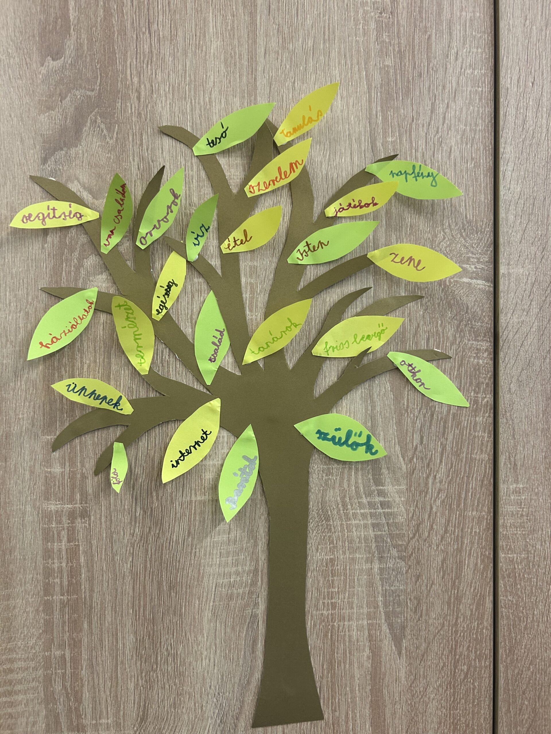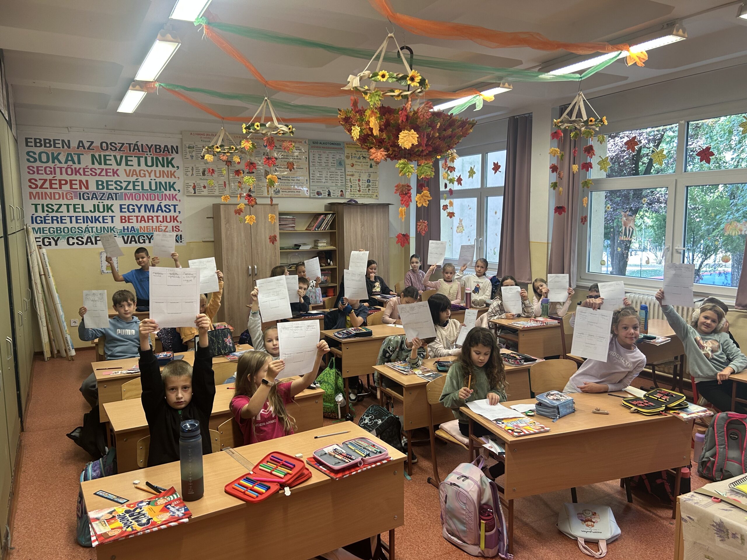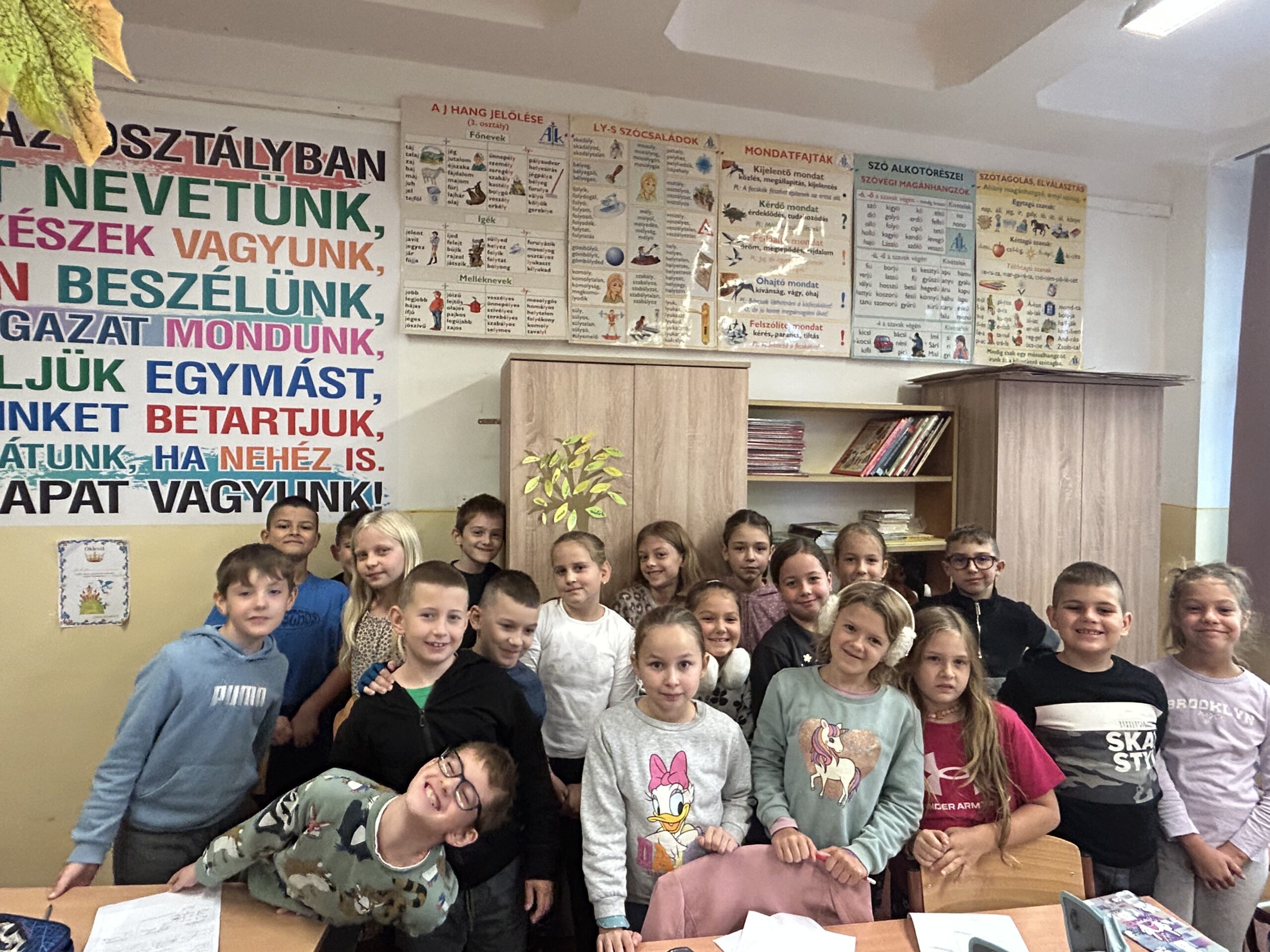 2025. szeptemberében a Hála témában tartottam boldogságórát a harmadikosoknak. Már a tavalyi tanévben volt három boldogságóránk, melyeket nagyon nagy lelkesedéssel fogadtak a tanulók, így idén már alig várták a folytatást. Az órát az „Égig érő fa vagyok, megnövök, mint a nagyok…” indító gyakorlattal kezdtük, majd elénekeltük a tavaly már megismert What Are You Thankful For? – Miért vagy hálás? című dalt. Visszaidéztük a hálával kapcsolatos tavalyi óránkat, összegyűjtöttük idén is mi mindenért lehetünk hálásak. Fő célom az volt, hogy idén azt is megértessem a tanulókkal, hogy nemcsak mi érezhetünk hálát mások cselekedeteiért, hanem nekünk is hálásak lehetnek mások, sőt mi magunknak is hálásak lehetünk. Különböző képek segítségével, különböző szituációkat játszottunk el, melyek elősegítették mindezek megértését, így ezután a munkafüzeti „Te se maradj ki!” feladat önálló elvégzése már gördülékenyen ment. Végül közösen készítettek a gyerekek egy hálafát, melyet a tanteremben kiragasztottunk, hogy minden nap láthassák mi mindenért lehetnek hálásak. Jó volt látni a ragyogó szemüket, amiben az csillogott, hogy elvitték az óra üzenetét.
