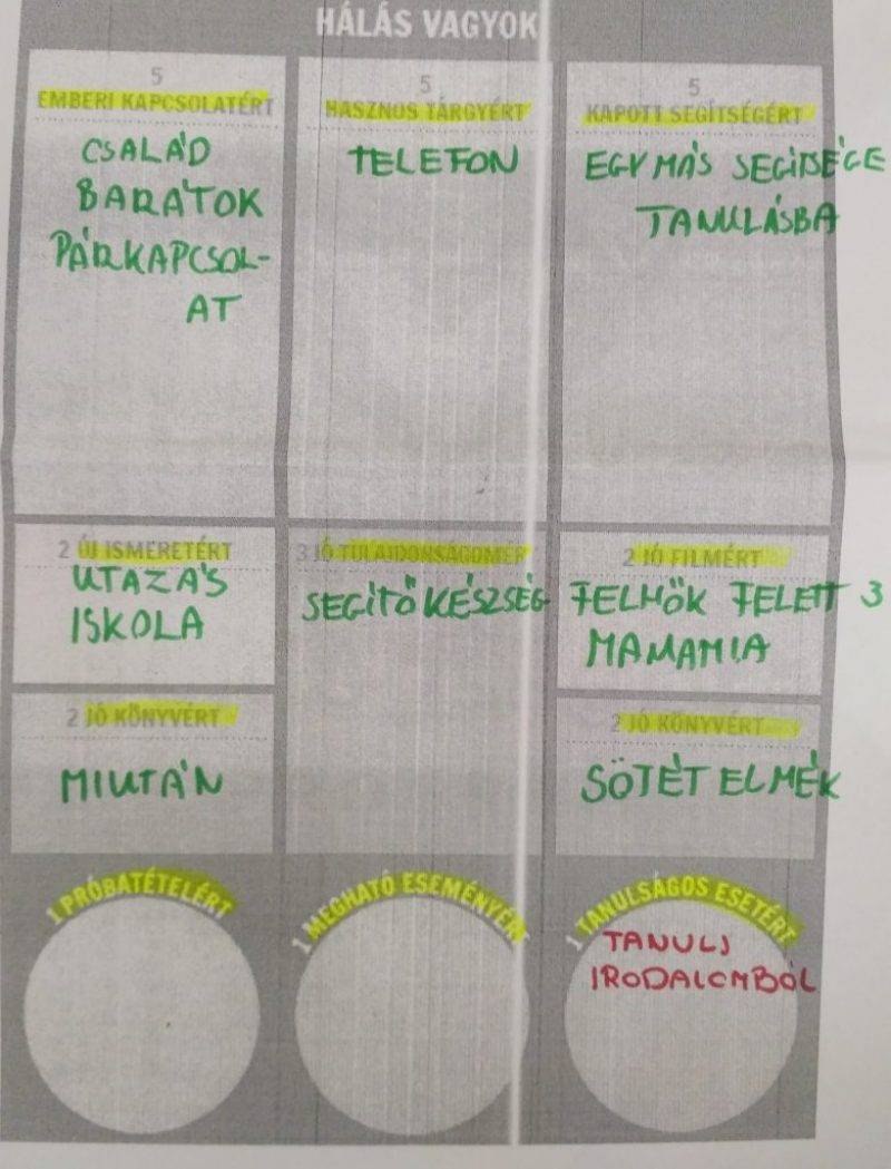 - Téma: A boldogságfokozó hála