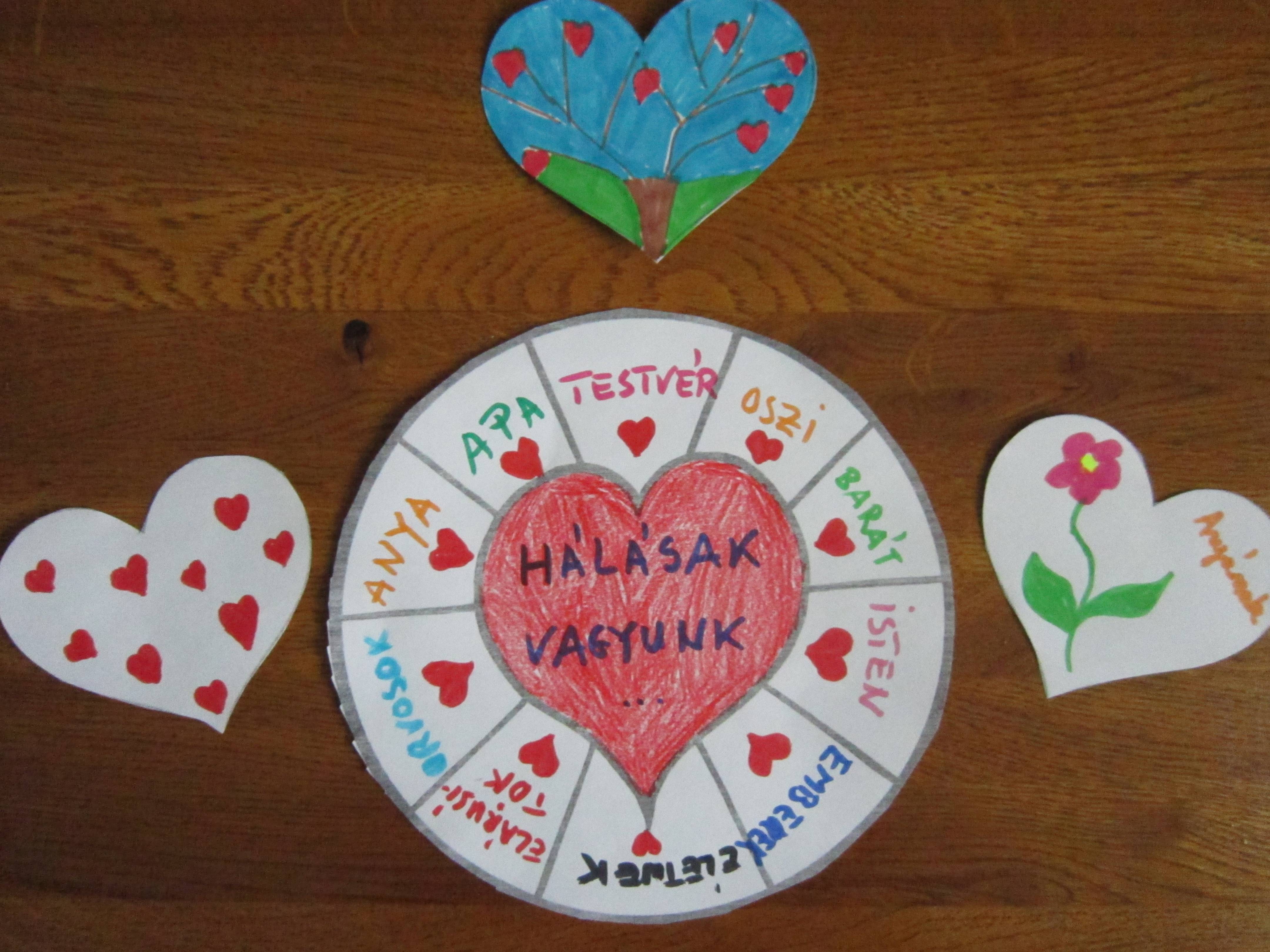 A háláról és annak fontosságáról beszéltünk.Többek között minden gyerek és csoportvezető megnevezett három dolgot, amiért itt és most hálás lehet.Ezekből készítettünk egy közös hálakereket, ahol feltüntettük, hogy miért is lehetünk hálásak.Pl. a családért, barátokért, osziért, Istennek, de az életért is. Közben Bella dalokat hallgattunk !