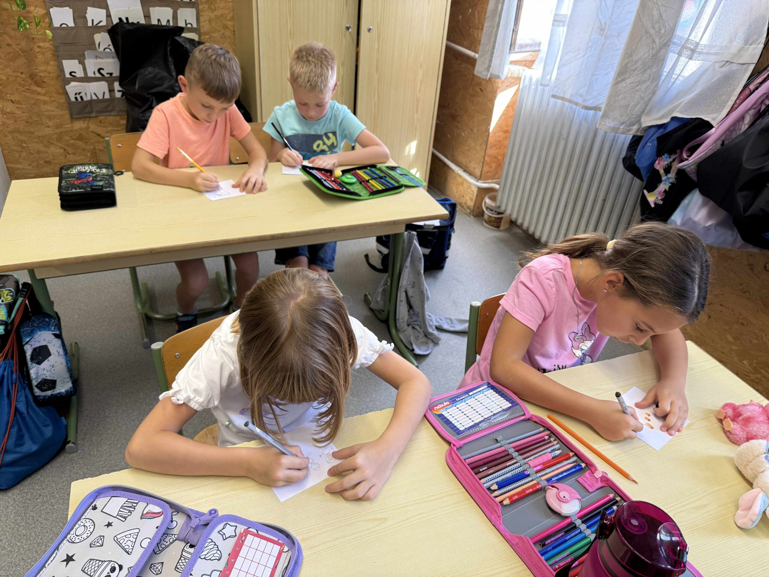 A Villányi Általános Iskola és AMI 1. osztályos kis tanulói számára szeptemberben a legfontosabb feladat a bizalom kialakítása volt. Játék keretében lehetőséget biztosítottam az ölelésekre. Beszélgettünk a családról. Miért lehetünk hálásak? Mindenki lerajzolta a családját.