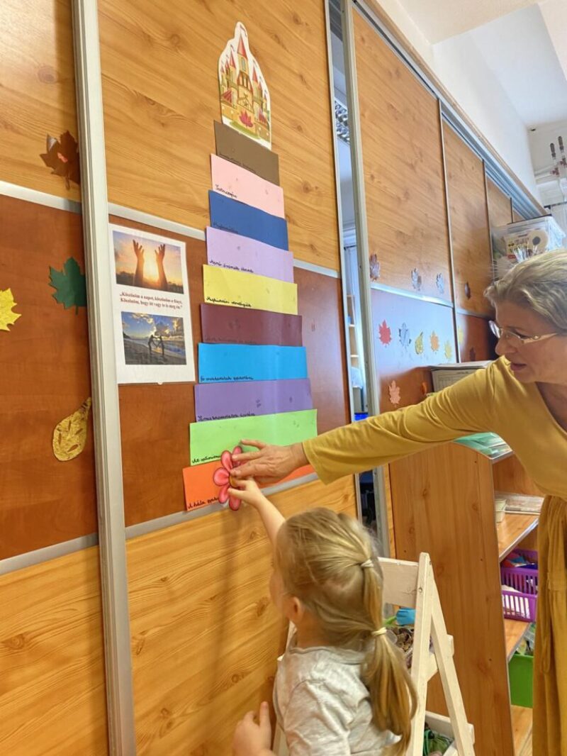 Ebben a nevelési évben egy új csoporttal kezdtem – nagycsoporttal, akiknek még ismeretlen a Boldogságóra – Boldog Dóra és Nóra. A Boldog lányok bemutatkoztak a gyerekeknek, majd beszélgetőkör keretében Boldog Dóra és kishúga Boldog Nóra egy történetet játszott el, amivel el tudtam indítani a kérdést: „Nóra miért volt hálás?”, „Te miért vagy hálás?”, miközben körbe adták a hála levelet.