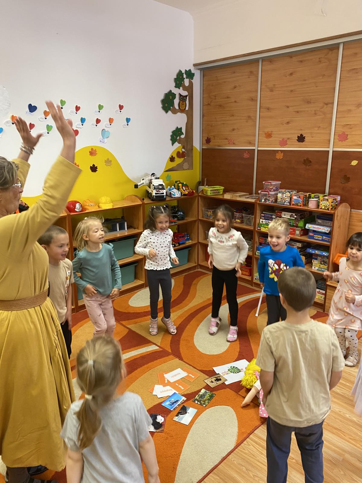 Megöleltük egymást a „Köszönöm a napot, köszönöm a fényt, Köszönöm, hogy itt vagy te is meg én.” mondókára, majd táncra perdültünk a Boldog vagyok dalra.