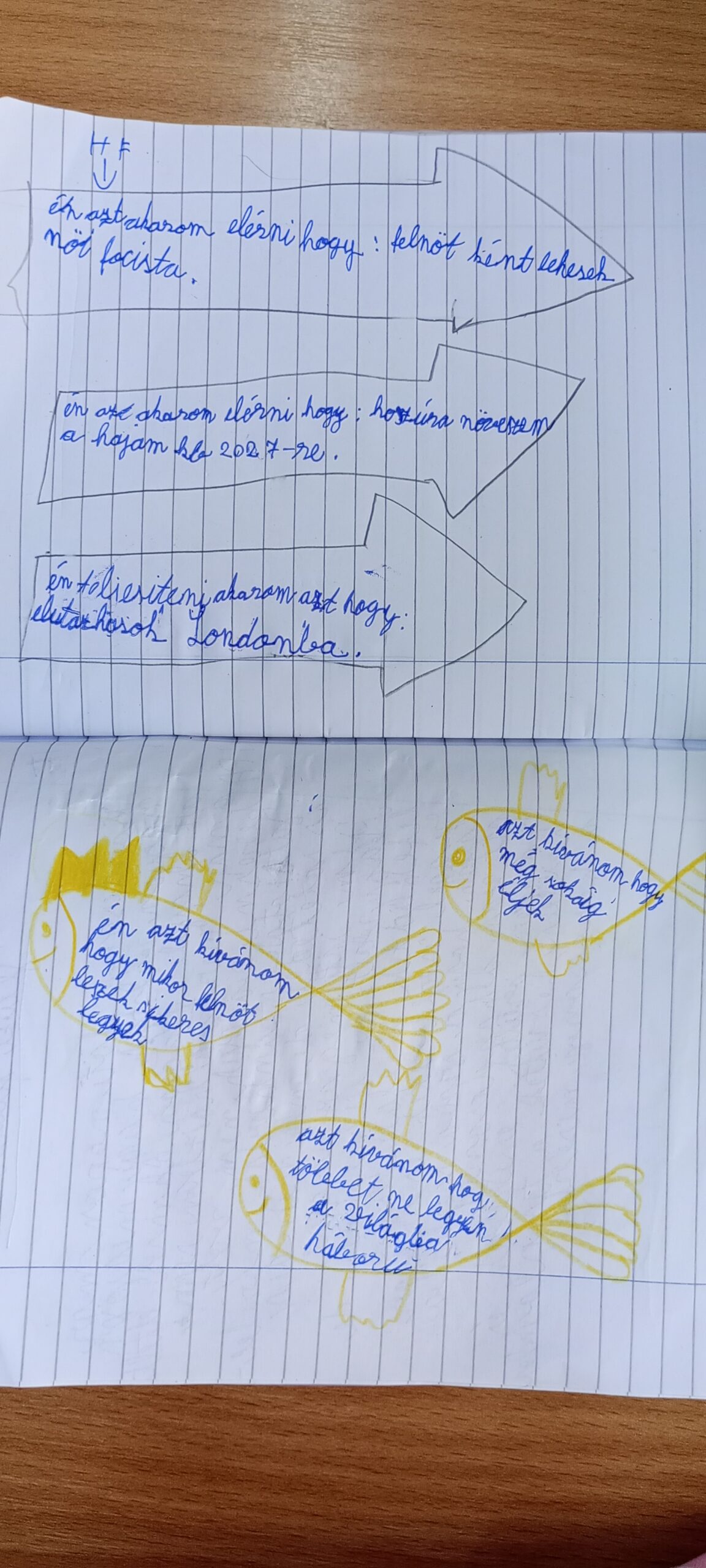 A célok és kívánságok közti különbségek megfigyelésén és meghatározásán volt a fő hangsúly, illetve a füzetbe is írtak aranyhalacskákba kívánságokat, nyilacskákba pedig célokat fogalmaztak meg.
