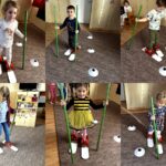 A mozgásos játékok során a tornaszobában hógolyócsatát rendeztünk kislabdák segítségével. A játék nemcsak felszabadító mozgásélményt nyújtott, hanem szabálykövetésre, önkontrollra és egymás tiszteletben tartására is nevelte a gyermekeket. Megbeszéltük a játékszabályokat, és közösen figyeltünk arra, hogy mindenki biztonságban érezze magát. Ezt követően a „terem síelés” fortélyait sajátítottuk el, amely során a gyermekek játékos formában fejlesztették egyensúlyérzéküket, mozgáskoordinációjukat és kitartásukat. A kezdeti bizonytalanság után egyre magabiztosabban mozogtak, ami jól példázta, hogyan vezet a gyakorlás sikerélményhez. Ehhez természetesen a csoportban dolgozó felnőttek közös munkája elengedhetetlen volt, hiszen mindenkire komoly feladat várt. Volt, aki a gyerekeket húzta, akadt, aki a lábacskákat hómentesítette és volt, aki a havat biztosította a megfelelő élmény elérésének érdekében.