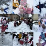 A közös élmények sorát a hóemberépítés indította. Bár az időjárás porhóval „próbára tett” bennünket, ez egyáltalán nem szegte kedvünket. A gyermekek lelkesedése és elszántsága végig megmaradt: együtt terveztük meg, hová kerüljön a hóember, hogyan gyűjtsük össze a megfelelő mennyiségű havat, és milyen legyen a végeredmény. A közös cél érdekében mindenki aktívan részt vett a munkában. Külön öröm volt számukra, hogy a karbantartó bácsi is csatlakozott hozzánk, hólapátot ragadott, és segített hordani a havat. Ez a közösségi élmény erősítette a gyermekekben azt az érzést, hogy a célok eléréséhez segítséget kérhetünk és kaphatunk, valamint hogy az együttműködés valódi értéket teremt.
