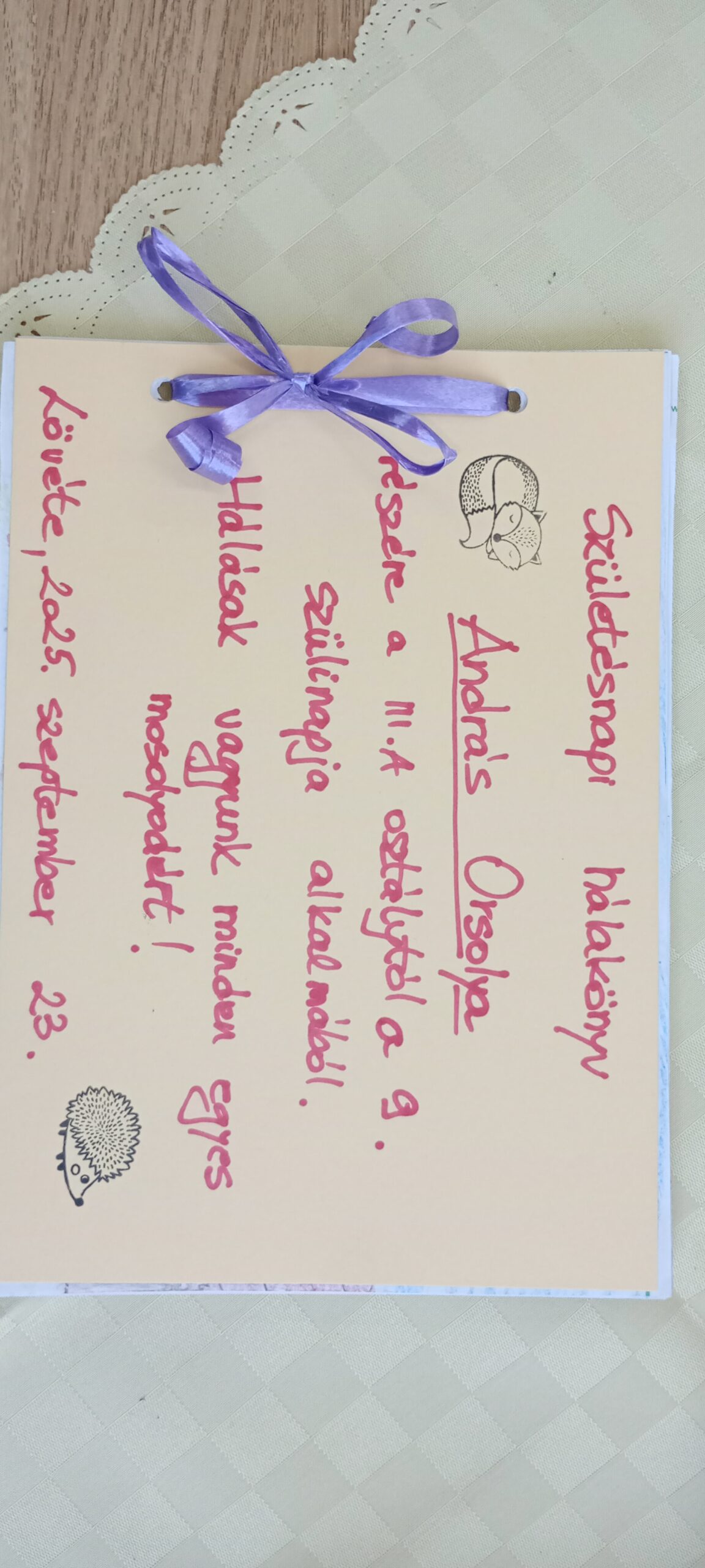 A hála fogalmával foglalkoztunk, mit jelent hálásnak lenni, majd mesét hallgattak (A csodakantár), ebből szerepjáték is volt, majd hálaüzenetet fogalmaztak egymásnak. Továbbgondolásként a szülinaposoknak a régebb alkalmazott rajzos emlékkönyv helyett Hálakönyvet adunk egész tanévben, amely tartalmaz minden osztálytárs részéről egy rajzos üzenetet, amelyben egy hálaüzenet is van, ezeket pedig könyvecskévé fűzöm.