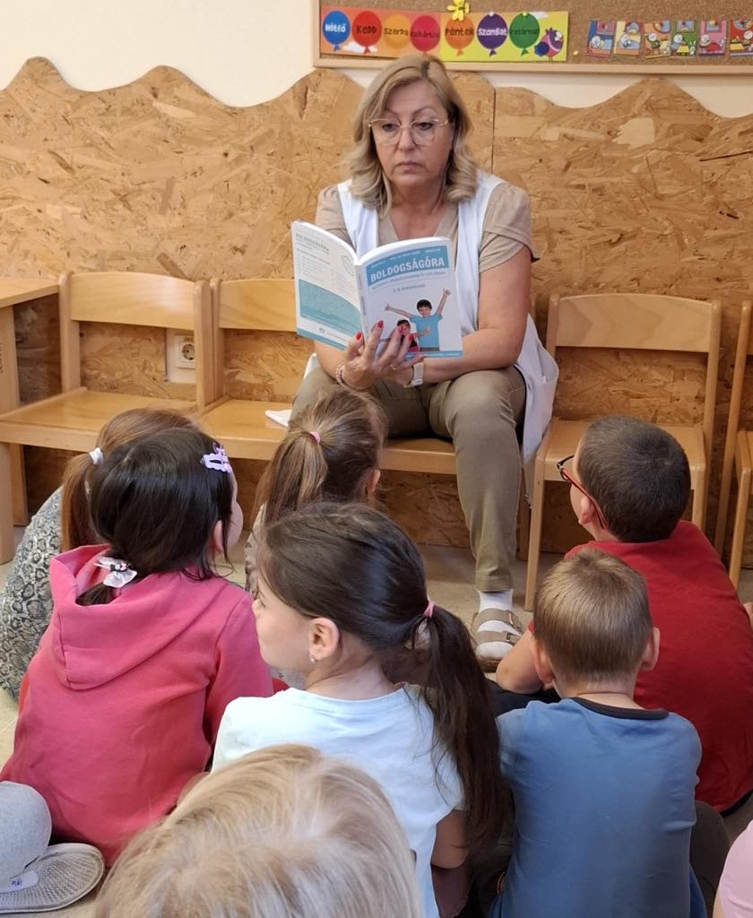 A fenntartható boldogság a mai világban fontos téma. Nemcsak a gyerekek, hanem a felnőttek életében is nagy hangsúlyt kap a boldogság keresése. Beszélgettünk arról, hogy ha éri őket egy örömteli esemény, mennyi ideig érzik tőle boldognak magukat, s mit lehet tenni annak érdekében, hogy ez a jó érzés fennmaradjon. Meghallgatták a Boldog erdő – Kerek erdő című mesét. Tudatosítottam bennük, hogy a hosszan tartó boldogság érzéséért mi magunk is felelősek vagyunk, emlékeznünk kell azokra az eseményekre, amik örömmel, boldogsággal töltik el az életünket.