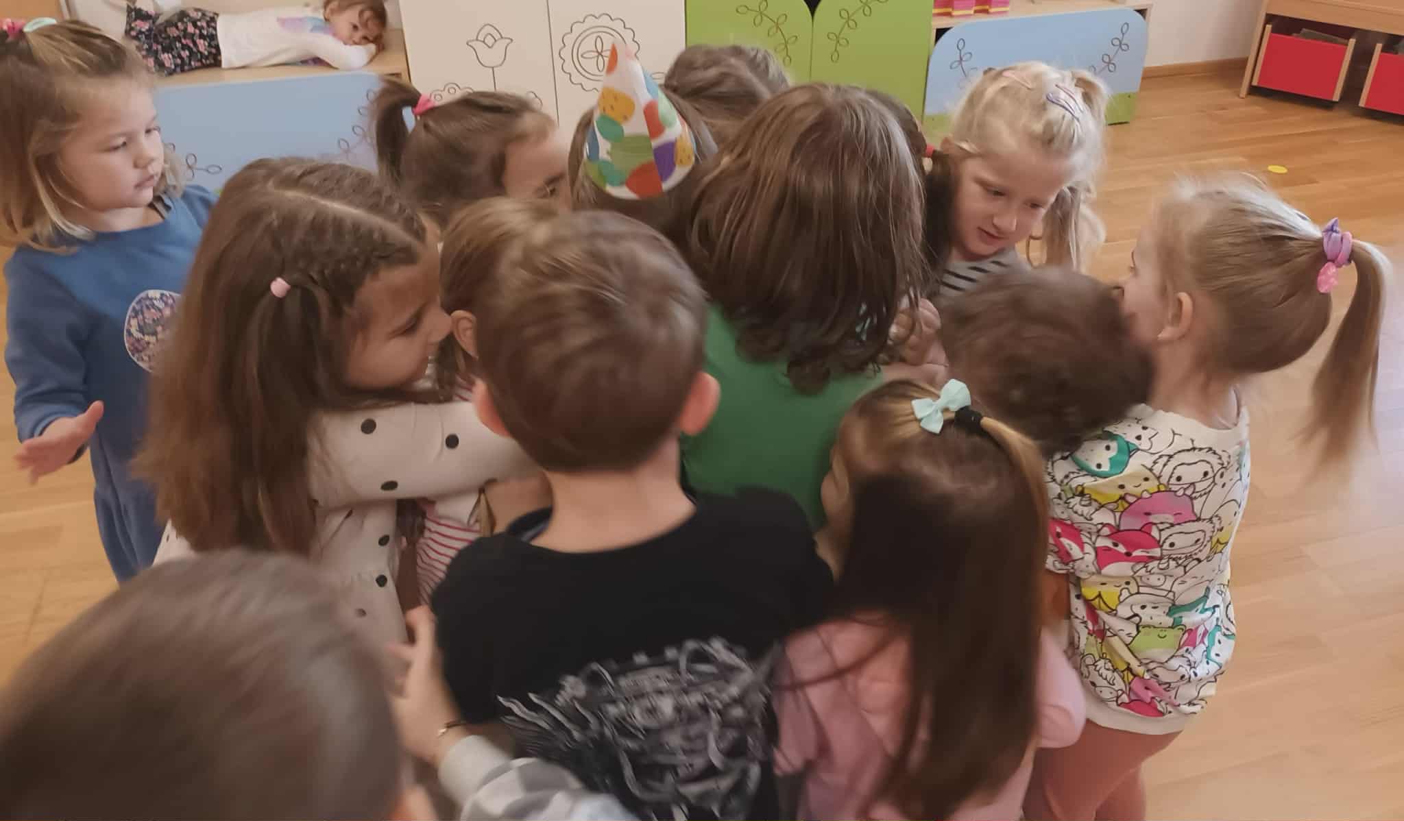 Azon a héten, amikor feldolgoztuk a gyerekekkel a Boldogságóra Alapprogram havi témáját (Támogató kapcsolatok), a csoportunkba járó egyik kisfiút felköszöntöttük születésnapja alkalmából. Nem nagy szülinapi partyval, csupán egy énekkel, egy hatalmas öleléssel és örömtánccal. Úgy éreztük, hogy D.- t boldoggá tudtuk tenni aznap, hiszen érezhette társai szeretetét.