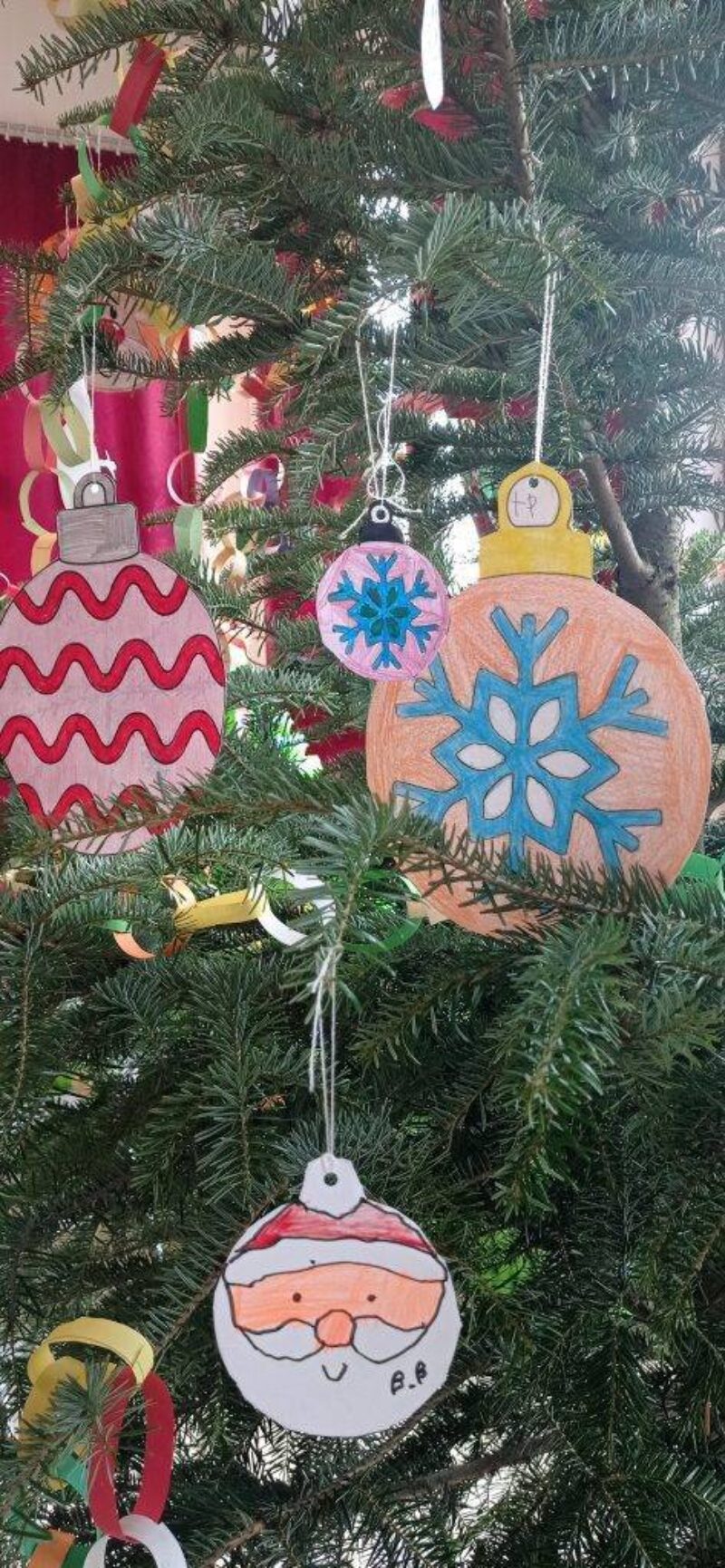 Karácsony ünnepéhez közeledvén meghallgattuk a Jó emberré csak szívemmel válhatok című dalt. Ezután arról beszélgettünk, hogy kinél milyen fa lesz karácsonykor, ki szokta feldíszíteni és mivel díszítik fel. Megbeszéltük, hogy iskolánk karácsonyfáját „gömbökkel” díszítjük fel. Ehhez kaptak egy sablont, melyre saját díszítést készítettek!