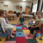 Egymással szembe raktam két széket, melyeket leterítettem szép, színes kendőkkel. „Aki erre a székre leül, csak a jót látja meg a másikban.” A páronként leültetett gyerekek egymás jó tulajdonságairól beszéltek. Érdekes dolgokat mondtak, tanulságos volt hallgatni.