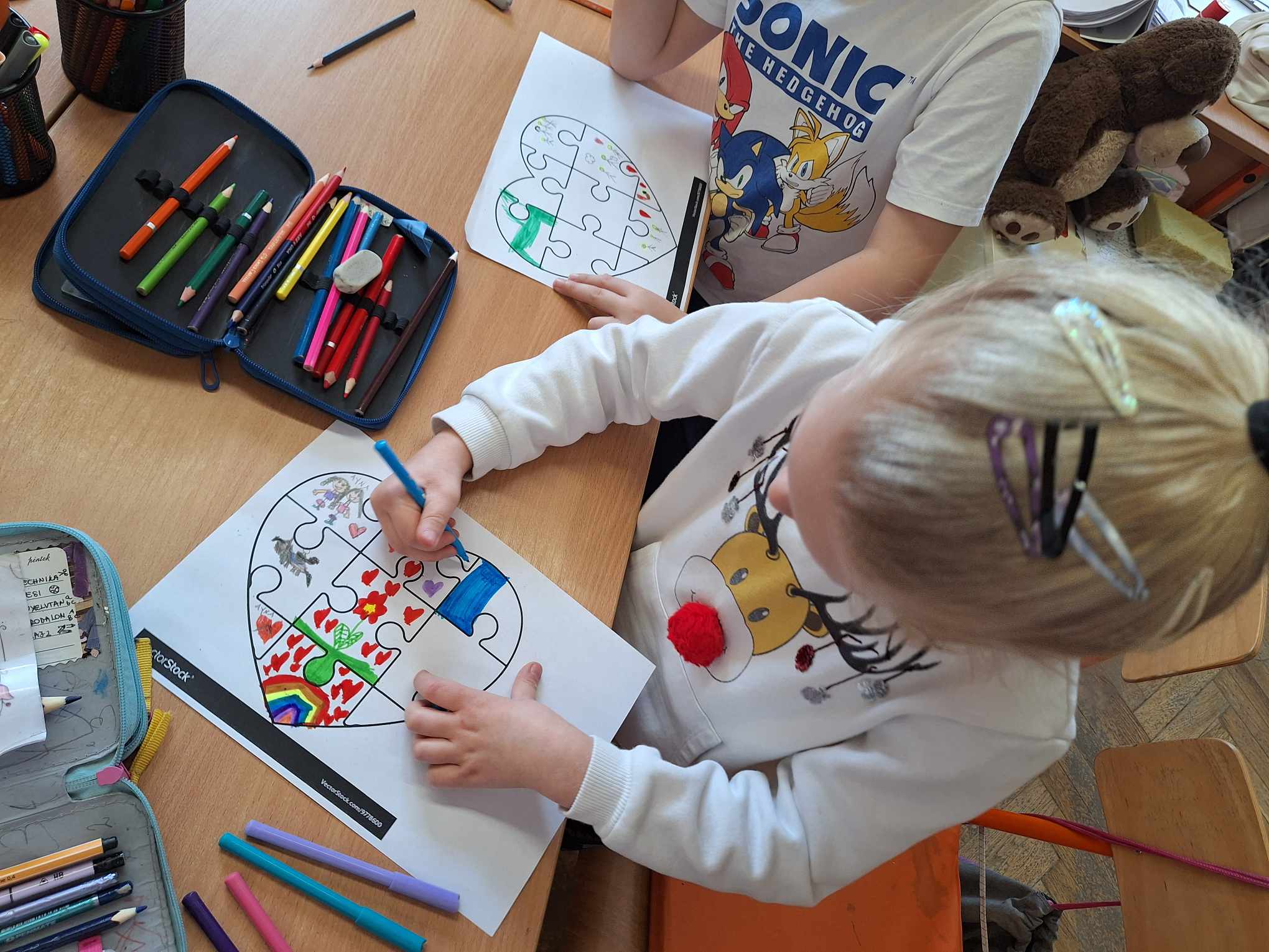 Ezt követően kiosztottam szív puzzle alapot, minden puzzle darabba egy-egy apró örömet rajzoltak le, majd aki szerette volna bemutta a többieknek. Megbeszéltük, hogy hazaviszik, aki tudja lelaminálja, hogy tartós játékként maradjon meg számukra.