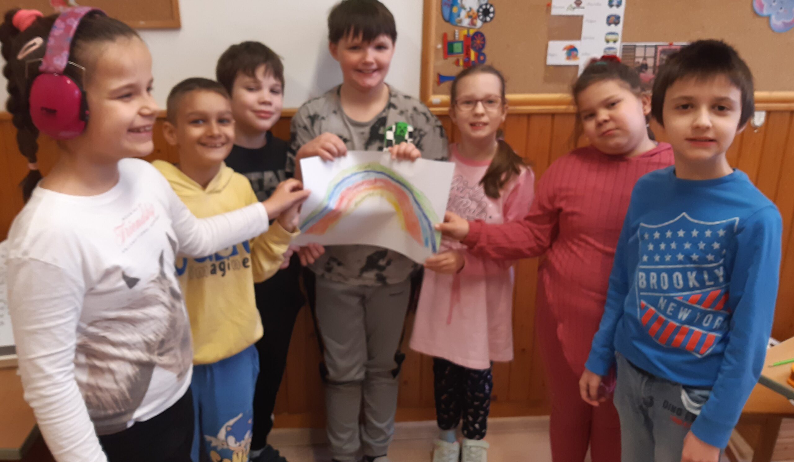 Megbeszéltük, volt e már valaki mérges, szomorú, és ha igen, hogy tudott megnyugodni, hogyan lett jobb a kedve. Ezután elkészítettük a megküzdés szivárványát közösen, amit kitettünk az falra is.