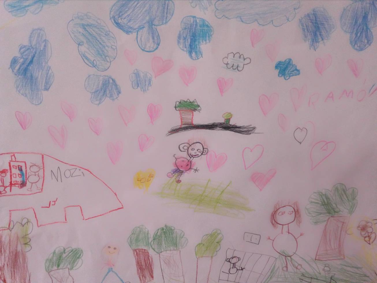 Az 1. a osztályos gyerekek a beszélgetések és a játékok után közösen lerajzolták azt, hogy hogyan tudják egymást segíteni.