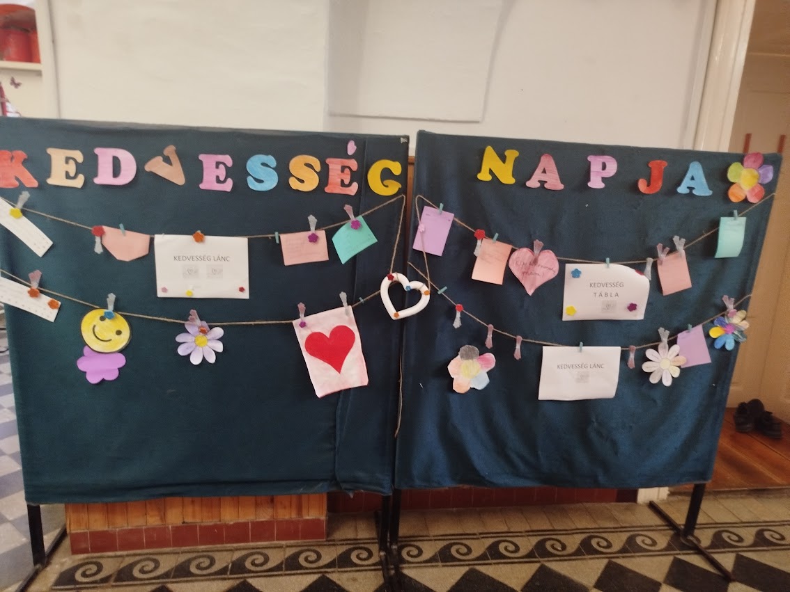 Mivel a társas kapcsolatok ápolásának alapja a kedvesség, ennek jegyében intézményi szinten megrendeztük a Kedvesség Napot. A gyerekek kedves üzeneteket írhattak egymásnak, amelyeket vagy személyesen adtak át, vagy kitettek az iskola „Kedvesség Falára”.