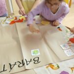 A tevékenység kezdetén elmondtam a gyermekeknek, hogy az embernek szüksége van a közösségre, a kapcsolatokra, barátokra, ami nemcsak a lelki jólétünk miatt, de az egészségünk szempontjából is igen fontos. Ezt követően még mindig körben ülve minden gyermek megkérdezte a mellet ülőtől, hogy: „kis barátom, hogy vagy?”. A beszélgetés már önmagában is fejlesztette az érzelmi tudatosságot, kommunikációs készséget. A beszélgetőkört követően A három kő és a híd c. mesét adtam elő a gyerekeknek mókus kesztyűbáb és kavicsok segítségével. Ezt követően három gyermek, akik a követ jelképezték egymás mellé álltak, és eljátszottuk, hogyan segítettek a kis mókusnak átjutni a túloldalra. A mesét követően minden gyermek kiszínezte a barátság jelét, amit felragasztottunk egy közös plakátra, amire rákerültek a barátságvirágok is. A virág szirmait, közepét a gyermekek saját maguk vágták ki, melynek közepébe rajzolták a jelüket, a szirmokra pedig a barátok jelét. A kézműves tevekénységet követően közös várépítés következett, melybe minden gyermek nagyon szívesen bekapcsolódott. A tevékenységet Bagdi Bella: Ha boldog vagy, mutasd meg mindenkinek c. dalával zártuk. A gyerekek önfeledten táncoltak, énekeltek, ölelték egymást. Nagyon jó érzéssel töltött el, látva, hogy a csoportba járó gyerekek mennyire szeretik egymást, hogy kimondták egymásnak, hogy a barátod vagyok.