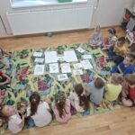 A nagyravágyó feketerigó mesével folytattam. A gyerekek türelmesen, érdeklődve hallgatták, a mese után páran ügyesen megválaszolták a feltett kérdéseimet: Miért volt szomorú a feketerigó és miért a kisfiú? A végén minek örültek mind a ketten?).