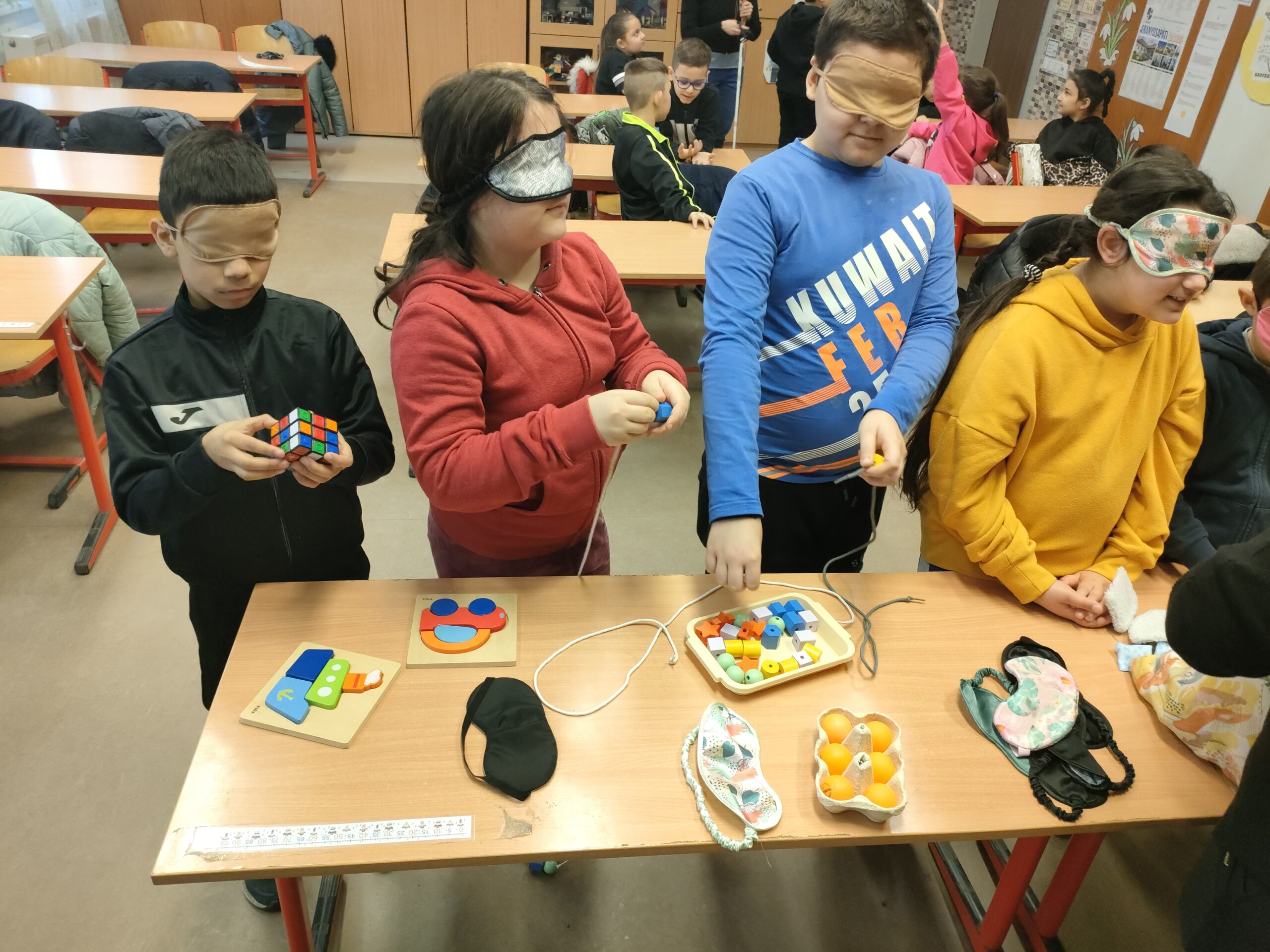 A februàri boldogságóràt összekapcsoltam a parasport napjàval. A gyerekekkel több videót is megnéztünk arról ,hogy parasportolóink, a mindennapos nehézségek ellenére sem adták fel céljaikat, hanem kitartóan küzdöttek azok eléréséért. Sokat beszélgettünk arról, hogy mindenkinek van olyan dolog az életében, ami nehezebben megy, de kitartással, sok sok gyakorlàssal, segítséggel mindent meg lehet oldani. A gyerekek ezen a napon betekintést nyerhettek abba is, hogy milyen lehet vakon, vagy kerekesszékben ülve elvégezni olyan feladatokat, amiket mi könnyedén meg tudunk csinàlni. A tornateremben egymást segítve kipróbàlhattak ilyen feladatokat. Egy érzékenyítő előadàs keretén belül szintén megismerkedhettek a vakok , gyengénlàtók életével, a szàmukra nélkülözhetetlen eszközökkel…. A nap végén rajzot készíthettek arról, hogy hogyan tudtàk megoldani a mai feladatokat.