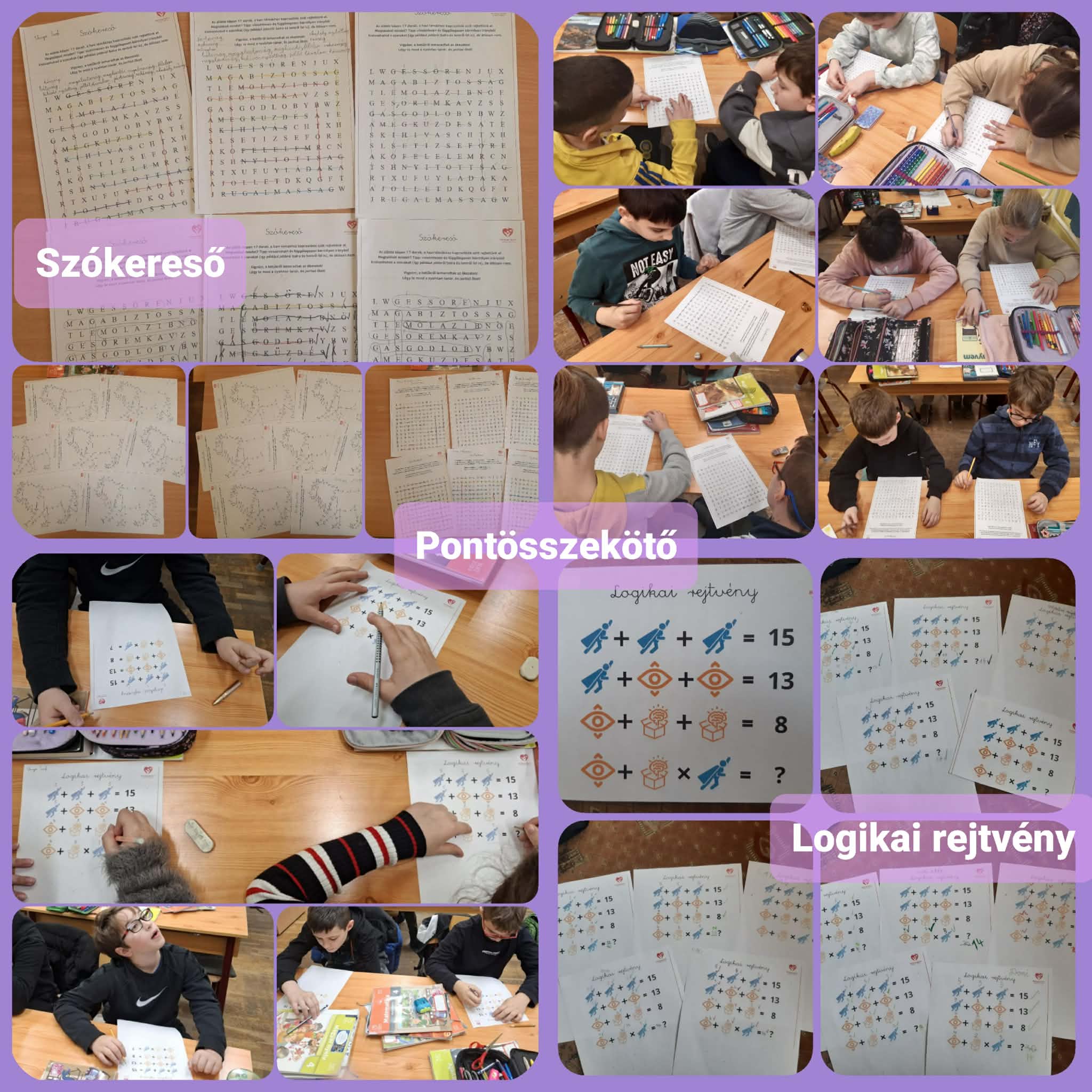Az online ötlettár feladataiból is válogattunk. Megoldottuk a Szókereső feladatlapot a havi témákhoz kapcsolódó szavak keresgélésével, majd a bátorság szimbólumát, az oroszlánt is megrajzoltuk a Pontösszekötő játékban. Mindkét feladatlap alkalmat adott komoly beszélgetésekre, erősségek felfedezésére és használatára, tulajdonságok, helyzetek, megoldások átbeszélésére. Megoldottuk a logikai rejtvényt is, a matek szakkörösök megmutathatták erősségüket az ilyen feladatok megoldásában.