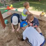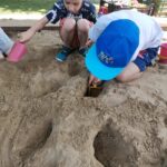 Június hónap témája a fenntartható boldogság volt. A Maci csoport gyerekei már reggeli után az udvaron vannak, így boldogórámat is ott töltöttem velük. Rendhagyó módon a homokozót tettük meg helyszínnek, és annak a szélén körben ülve soroltuk fel előző témáinkat, és emlékeztünk meg róluk. A gyerekeknek elmagyaráztam, hogy ezek a dolgok, amiről beszélgettünk, nagyon fontosak az életükben és iskolás korukban is figyeljenek egymásra, legyenek hálásak, tudjanak megbocsátani, fedezzenek fel minden apró örömöt maguk körül. Szerencse, hogy legtöbben a helyi általános iskola tanulói lesznek, és ez az intézmény rendelkezik a Boldog Iskola címmel, így ott is részt vehetnek a Maci csoport gyerekei boldogórákon. Végül a homokban- nagy alagút fúrások közepette- együtt felépítettük boldogságvárunkat. Örülök, hogy ebben a nevelési évben is boldogórákat tarthattam ovisainknak, érzelmi intelligenciájuk nagyban fejlődött a tevékenységek által, és a velük való foglalkozás élmény volt számomra is.