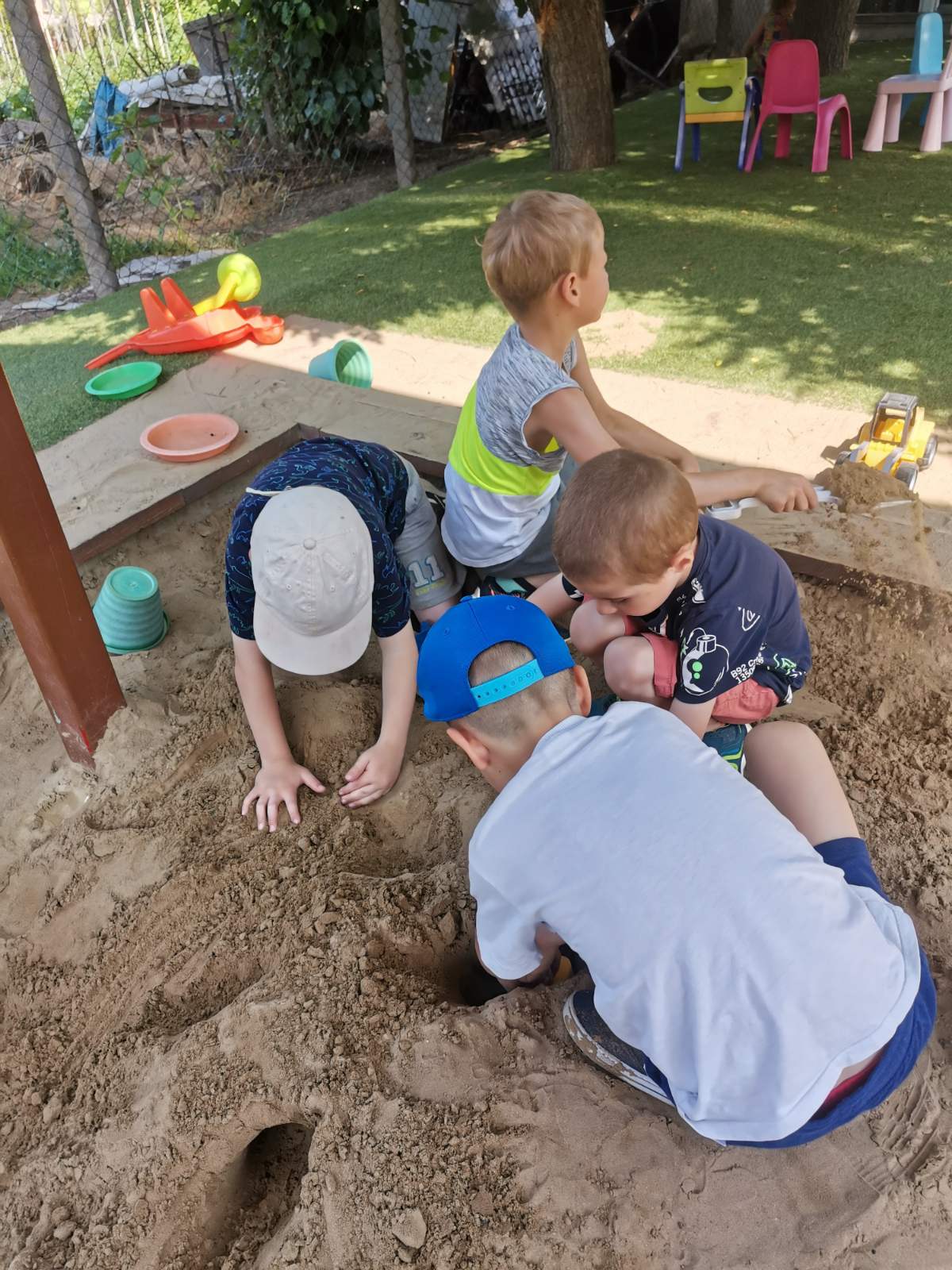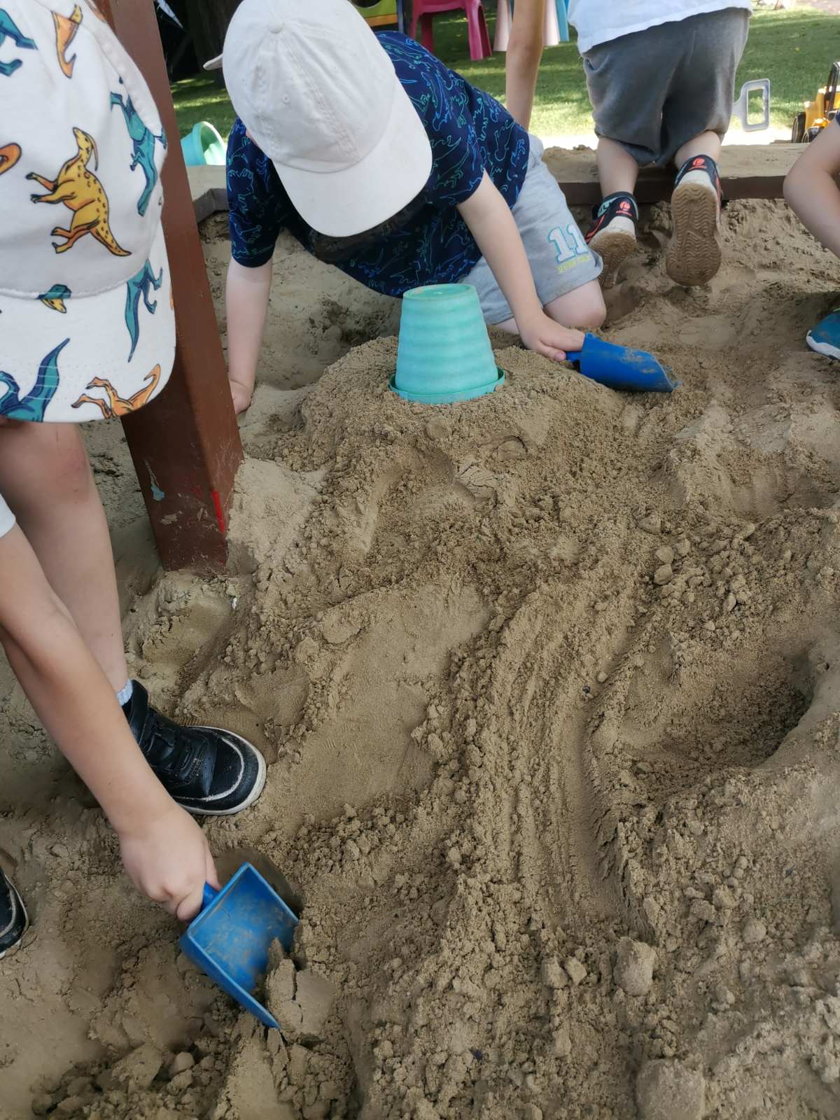 Június hónap témája a fenntartható boldogság volt. A Maci csoport gyerekei már reggeli után az udvaron vannak, így boldogórámat is ott töltöttem velük. Rendhagyó módon a homokozót tettük meg helyszínnek, és annak a szélén körben ülve soroltuk fel előző témáinkat, és emlékeztünk meg róluk. A gyerekeknek elmagyaráztam, hogy ezek a dolgok, amiről beszélgettünk, nagyon fontosak az életükben és iskolás korukban is figyeljenek egymásra, legyenek hálásak, tudjanak megbocsátani, fedezzenek fel minden apró örömöt maguk körül. Szerencse, hogy legtöbben a helyi általános iskola tanulói lesznek, és ez az intézmény rendelkezik a Boldog Iskola címmel, így ott is részt vehetnek a Maci csoport gyerekei boldogórákon. Végül a homokban- nagy alagút fúrások közepette- együtt felépítettük boldogságvárunkat. Örülök, hogy ebben a nevelési évben is boldogórákat tarthattam ovisainknak, érzelmi intelligenciájuk nagyban fejlődött a tevékenységek által, és a velük való foglalkozás élmény volt számomra is.