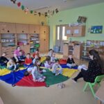 Szokásosan zenével lazultunk el, Napimádással folytattuk és hűen az aktuális óvodai tematikánkhoz, a Totyog a liba gyakorlattal folytattuk. Ezt követően egy igen kedves libás dallal folytattuk, a „Ki libámat elviszi….”-vel, aminek a végén meg kell egymást ölelni.