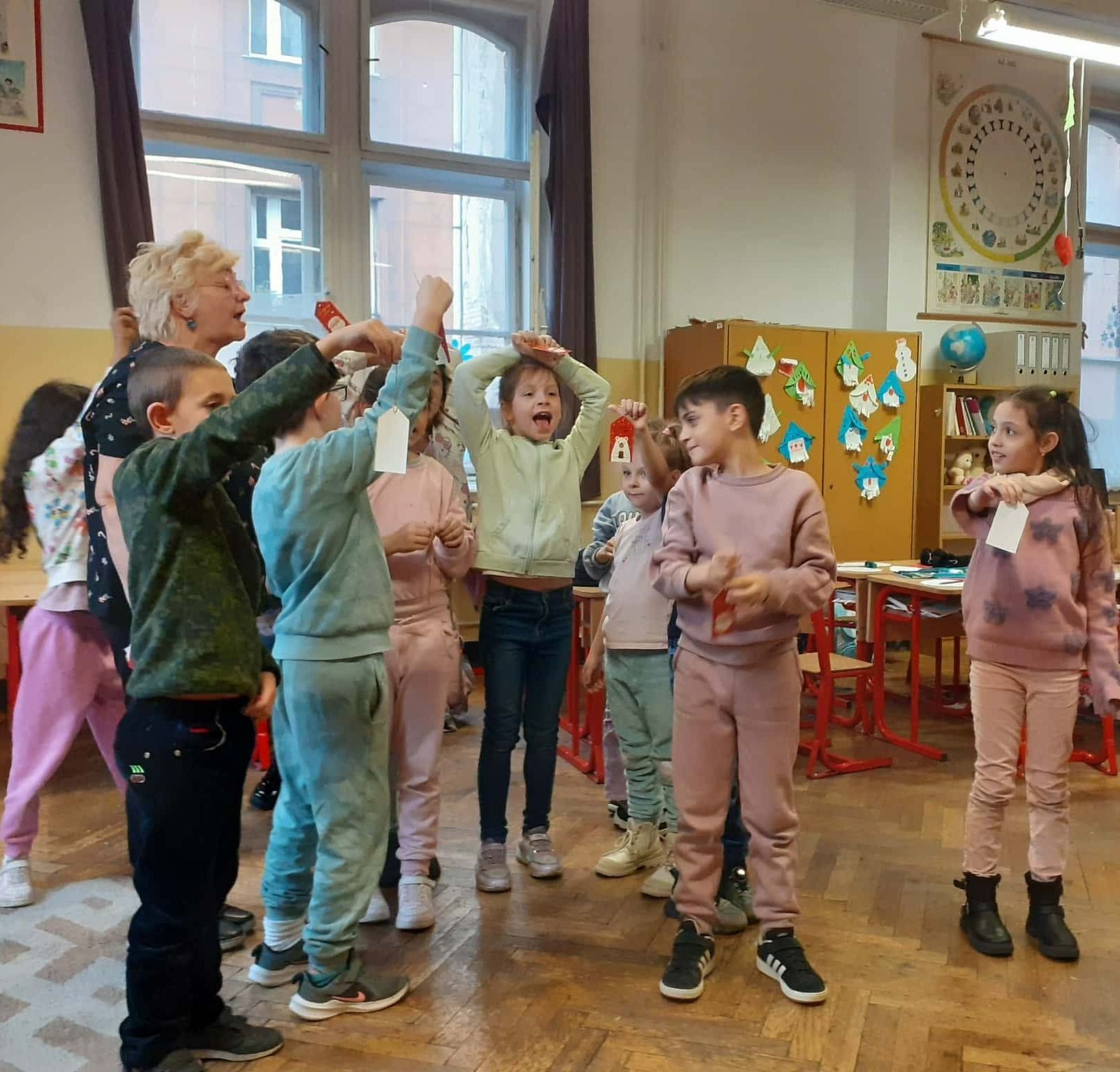 A végén kitágítjuk a kört egy teljes nagy kört fogunk alkotni. (a tanítókkal együtt)