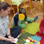 Süni irigy lesz című mesével vezettem fel a témánkat, majd beszélgetésbe, közös gondolatébresztésbe kezdtünk, milyen is egy igazi, jó barát. Elővettük a szívecskés jeleinket, a hiányzókét is, és mindenki annak adta oda, aki az ő legjobb barátja. Lelket simogató volt látni, ha valaki kölcsönösen kapott szívecskét a barátjától, illetve, hogy gondoltak a hiányzó társaikra is. Végezetül lehetett barátság karkötőket készíteni egymásnak ajándékba.