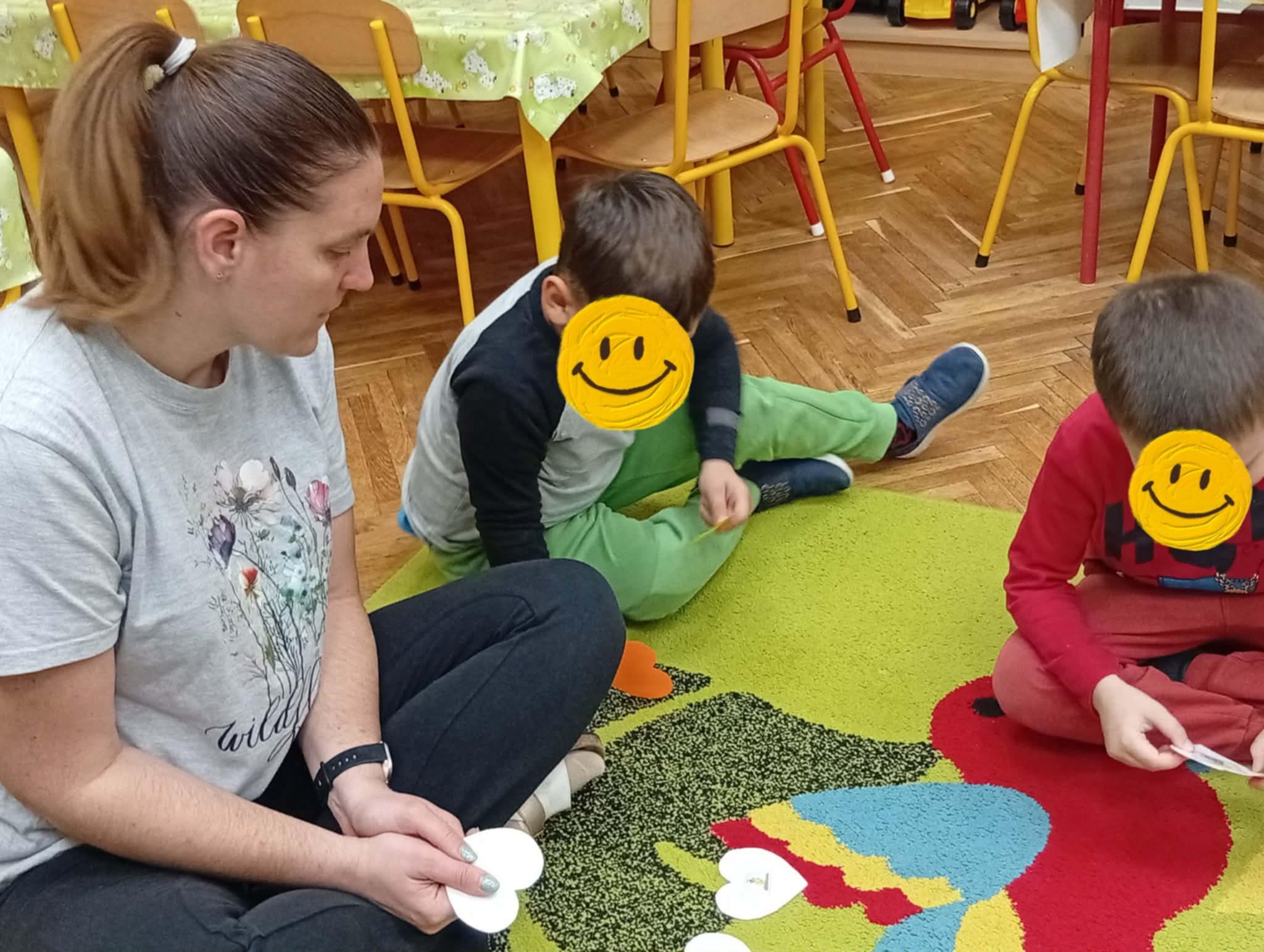 Süni irigy lesz című mesével vezettem fel a témánkat, majd beszélgetésbe, közös gondolatébresztésbe kezdtünk, milyen is egy igazi, jó barát. Elővettük a szívecskés jeleinket, a hiányzókét is, és mindenki annak adta oda, aki az ő legjobb barátja. Lelket simogató volt látni, ha valaki kölcsönösen kapott szívecskét a barátjától, illetve, hogy gondoltak a hiányzó társaikra is. Végezetül lehetett barátság karkötőket készíteni egymásnak ajándékba.