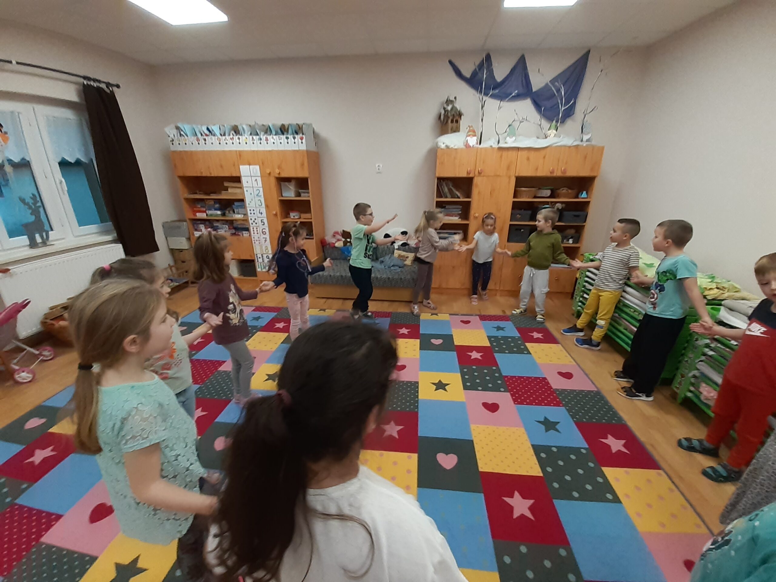 Játszottunk olyan játékot, melyben egymásra is nagyon kellett figyelni és saját magukra is, hogy ne essenek ki a játékból.( An-tan ténusz…)