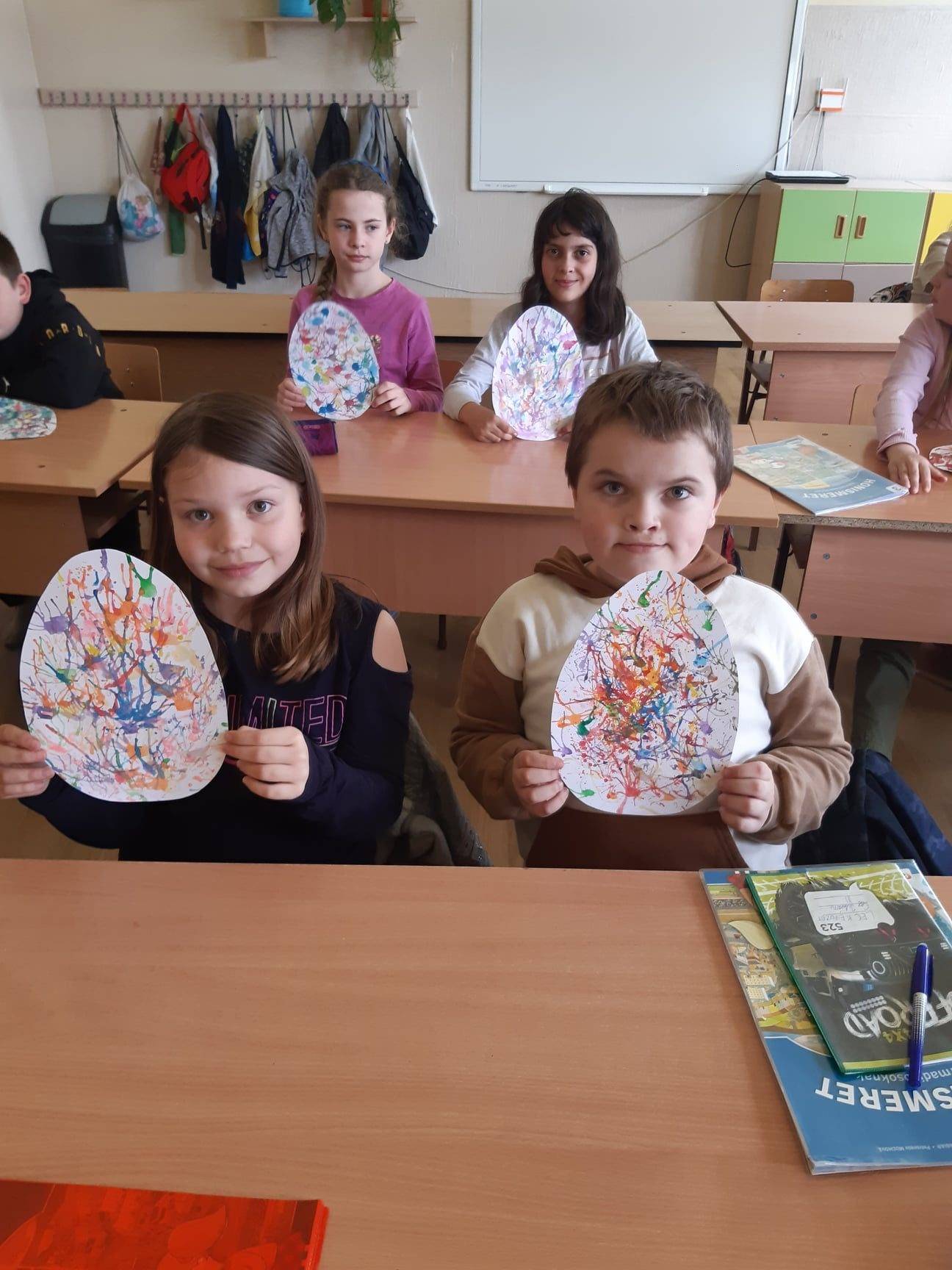 A tizenkét hónap görög népmesét olvastuk és beszélgettünk róla. Majd a közelgő húsvéti ünnepek kapcsán papírtojásokat festettünk nagy élvezettel. Valamint tyúkokat alkottunk és töltöttük meg édességgel. Örömforrásokat sorakoztattunk fel érzékszervekhez kötődően, az alábbiak hangzottak el: naplemente szépsége, cica bársonyos szőre, madarak csicsergése, dinnye zamatos íze.