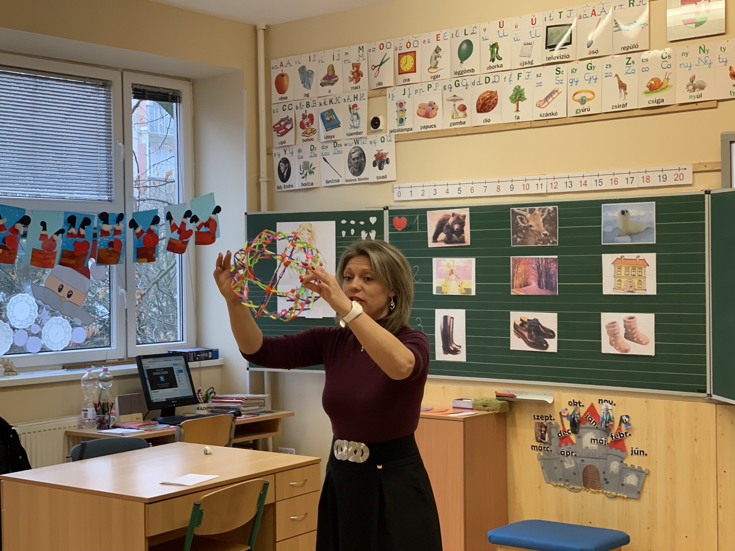 Több éve már, hogy a Tisza-parti Általános Iskola beiskolázási programjának egy állomása a boldogságóra. Ebben az évben az óvónénik hozták el a gyerekeket az iskolánkba, hogy barangoljanak boldogságórán. Az óra fókuszában a jó cselekedet állt. Az órát egy labdás játékkal kezdtem, ahol kötetlenül beszélgettünk a decemberi ünnepekről. A karácsony az öröm, a szeretet, a békesség, a család és a jó cselekedetek ünnepe. Megkérdeztem a gyerekektől, hogy szoktak-e jót cselekedni. Természetesen igen volt a válasz, és sorolták a segítőkész, együtt érző példáikat. Mire lesz szüksége egy jótevőnek? -hangzott el a kérdésem. A táblán lévő rajzot kellett kiegészíteniük az óvodásoknak, figyelő szemekkel, kérést meghalló fülekkel, segítőkész kezekkel, gyors lábakkal, okos fejjel és szeretetteli szívvel. Ezután egy rövid mesét meséltem el nekik, amit én írtam és figyelő szemekkel kellett meghallgatniuk. A mesében lévő három jó cselekedetre hívtam fel a figyelmet. (madáretetés, ceruza kölcsönadása padtársnak, rendrakás, zoknikötés mindenkinek, hogy az erdőben senkinek ne fázzon télen a talpa). A bölcs bagoly jóságos süteményeivel és egy karácsonyi memóriajátékkal zártam le az órát. Az 1.b és a 3.b osztály jó cselekedete az volt, hogy ajándékot készítettünk az óvodásoknak. Öröm volt számomra, hogy az óvodások annyira jól érezték magukat az iskolában, hogy maradtak volna még boldogságórán. Ez a boldogságórás barangolás úgy érzem elérte a célját, hiszen az érzelmi nevelésre mindenkinek szüksége van. Az óvoda és az iskola közötti átmenetet is nagyban segítjük ezekkel az órákkal.