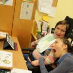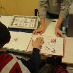 A második órán készítettünk hála kártyákat, amit kommunikátorok, PCS képek és gesztusok segítségével átadhattak az iskolai kiválasztottaknak. Otthoni személyeknek már egyedül, a tanultak alapján tudnak hálát és köszönetet mondani.