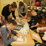 Az első Boldogság órát szeptember 27-én tartottuk. A témák feldolgozására egy teljes napot szántunk. Az órákat a zöld csoport 6 súlyosan, halmozottan sérült, nem beszélő növendékeivel valósítottuk meg.