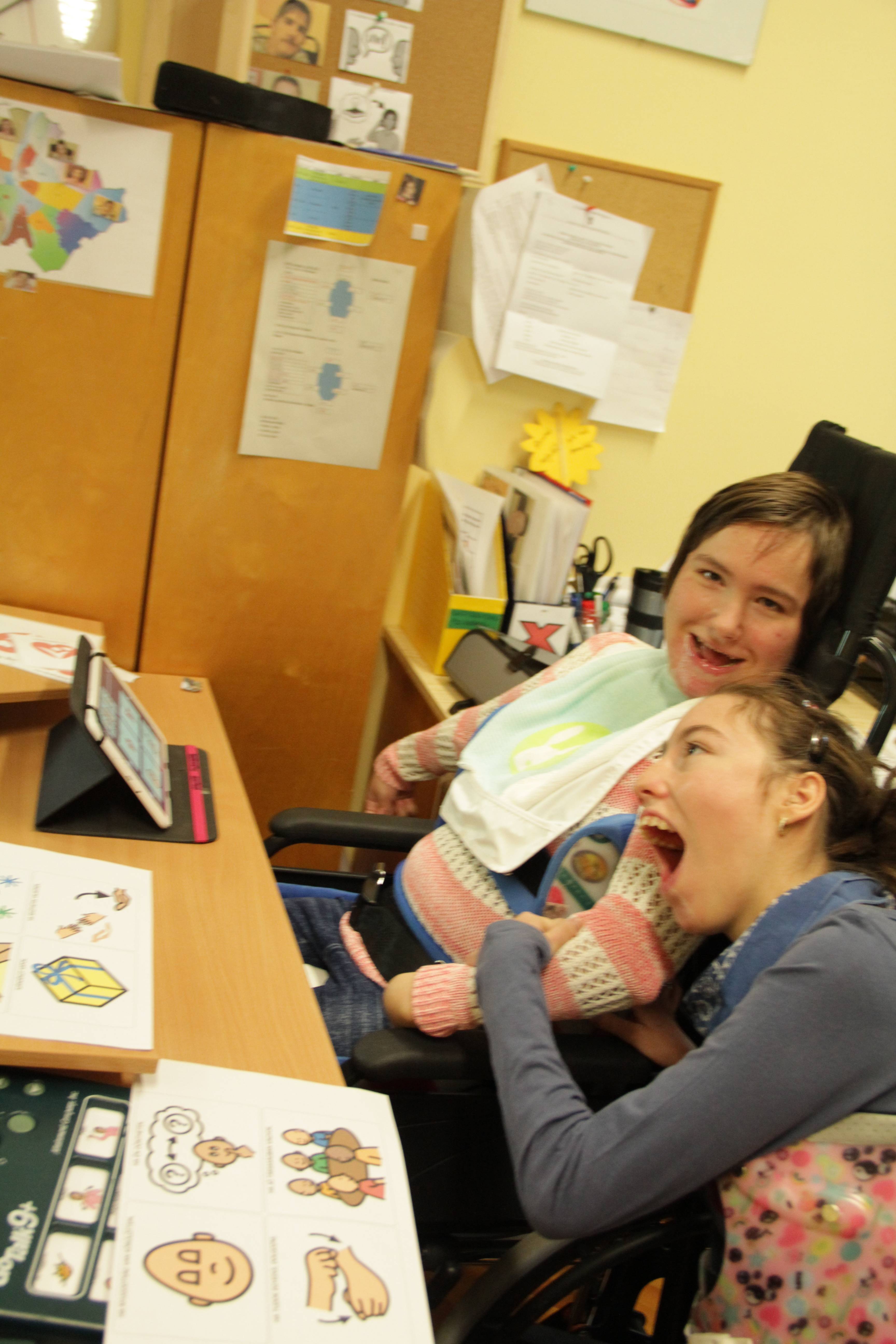 A második órán készítettünk hála kártyákat, amit kommunikátorok, PCS képek és gesztusok segítségével átadhattak az iskolai kiválasztottaknak. Otthoni személyeknek már egyedül, a tanultak alapján tudnak hálát és köszönetet mondani.