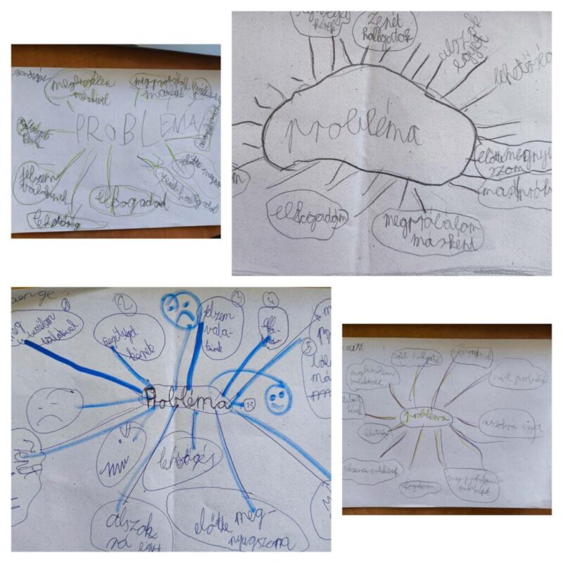Mit tehetek, ha problémám van? Kihez fordulhatok? Szituációs játékokkal elevenítettük meg a problémáinkat, majd a megküzdési stratégiáinkat fürt-ábrán ábrázoltuk.