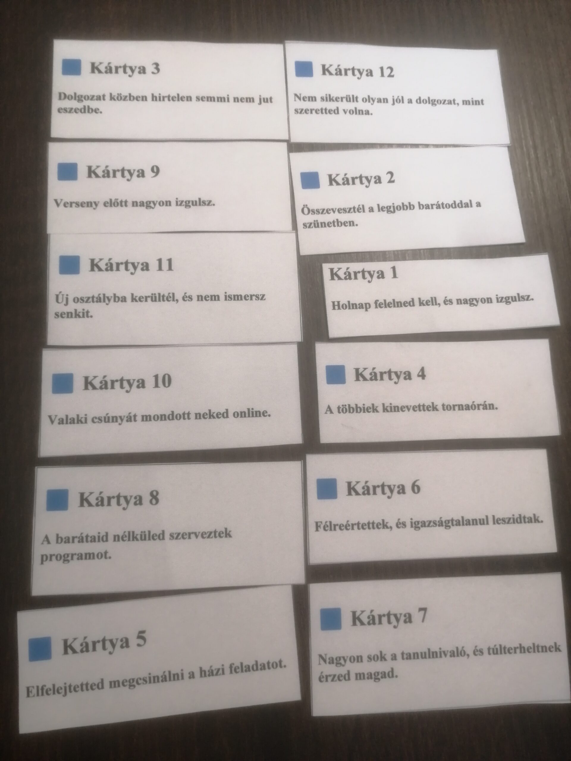 Az órát egy gyors körrel zártuk, melyben mindenki kedve szerint fejezte be a következő mondatot: „Legközelebb, ha ideges leszek, …”