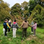 A foglalkozás során megfigyeltük, hogyan készülődik a kert a télre, és közben arról beszélgettünk, hogy bár a fák elveszítik leveleiket, bennük már ott rejlik a tavasz ígérete. A gyerekek megérintettek, átöleltek egy-egy fát vagy bokrot, majd megfogalmazták, mit üzenhet nekik a jövőről – például: „Tavasszal új levelem nő!” Ezután mindannyian lerajzolták a saját „optimista fájukat”: egy levél nélküli, mosolygós fát, amely bizakodva tekint a jövőbe, tudva, hogy tavasszal újra rügyet bont, levelet hajt és gyümölcsöt hoz.A hangulatot különlegessé tette, hogy meghallgattuk Petőfi Sándor „Itt van az ősz, itt van újra” című versének megzenésített változatát, https://www.youtube.com/watch?v=kTYTvbMFEdg&list=RDkTYTvbMFEdg&start_radio=1 amelyet együtt is elénekeltünk. A dal hangulata és üzenete tökéletesen kapcsolódott a kert üzenetéhez: a változás természetes, és minden elmúlásban ott rejlik az új kezdet reménye. A foglalkozás végén „kincsvadászatra” indultunk a kertben, ahol mindenki három apró szépséget keresett – színes levelet, virágot, vagy termést A megtalált kincseket közösen szív alakban raktuk ki a földre. A feladat azt szolgálta, hogy ott is meglássuk a szépet, ahol nem mindig sikerül, csak figyelmes szem és nyitott szív kell hozzá.