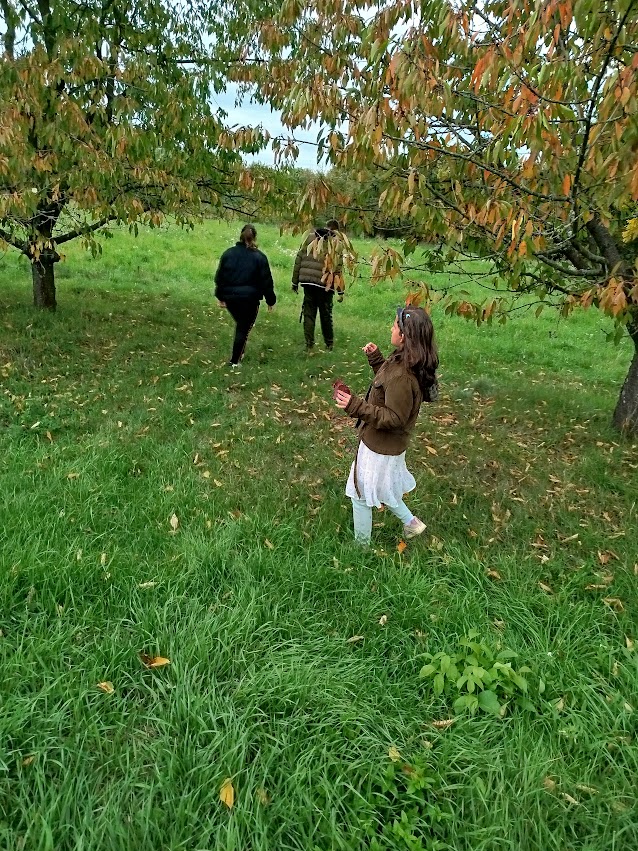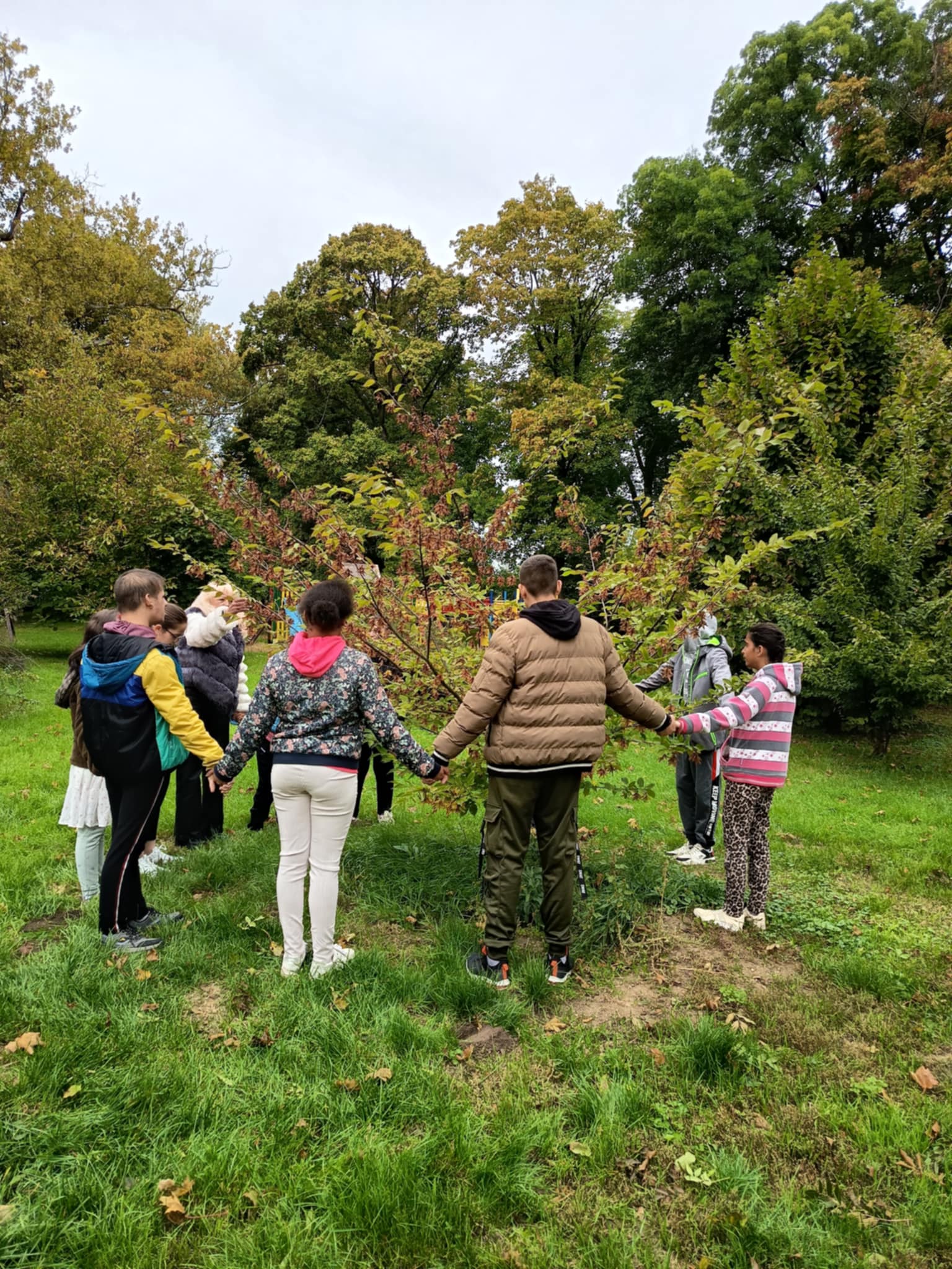 A foglalkozás során megfigyeltük, hogyan készülődik a kert a télre, és közben arról beszélgettünk, hogy bár a fák elveszítik leveleiket, bennük már ott rejlik a tavasz ígérete. A gyerekek megérintettek, átöleltek egy-egy fát vagy bokrot, majd megfogalmazták, mit üzenhet nekik a jövőről – például: „Tavasszal új levelem nő!” Ezután mindannyian lerajzolták a saját „optimista fájukat”: egy levél nélküli, mosolygós fát, amely bizakodva tekint a jövőbe, tudva, hogy tavasszal újra rügyet bont, levelet hajt és gyümölcsöt hoz.A hangulatot különlegessé tette, hogy meghallgattuk Petőfi Sándor „Itt van az ősz, itt van újra” című versének megzenésített változatát, https://www.youtube.com/watch?v=kTYTvbMFEdg&list=RDkTYTvbMFEdg&start_radio=1 amelyet együtt is elénekeltünk. A dal hangulata és üzenete tökéletesen kapcsolódott a kert üzenetéhez: a változás természetes, és minden elmúlásban ott rejlik az új kezdet reménye. A foglalkozás végén „kincsvadászatra” indultunk a kertben, ahol mindenki három apró szépséget keresett – színes levelet, virágot, vagy termést A megtalált kincseket közösen szív alakban raktuk ki a földre. A feladat azt szolgálta, hogy ott is meglássuk a szépet, ahol nem mindig sikerül, csak figyelmes szem és nyitott szív kell hozzá.