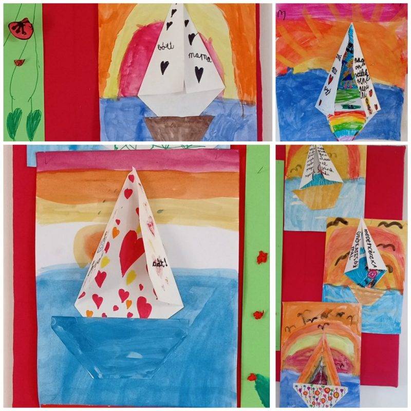 A tanév végéhez közeledve összegeztük, átismételtük a megismert témákat. Feldolgoztuk a Katica elveszett pöttyei című mesét is. A megkezdett mozgásos testnevelésórák nagy sikert arattak, így az utolsó héten még elmentünk egy nagy játszótérre is. Megbeszéltük a nyárra szóló terveinket és azt is, hogy ki mitől tud jobb kedvre kerekedni. Ezeket egy kishajó vitorlájára kellett felírniuk, felrajzolniuk maguknak emlékeztető gyanánt. Amennyiben ha ránéznek, jókedvre derüljenek. Saját magam úgy látom, hogy az idei évben az apró örömök téma lett a legsikeresebb. Ugyanis folyton vannak diákok, akik örömmel mutogatják azokat a dolgokat, amikre épp rácsillant a szemük. Még egy apró víz kiborulásban is észrevették az „szív-boldogság” üzenetét.
