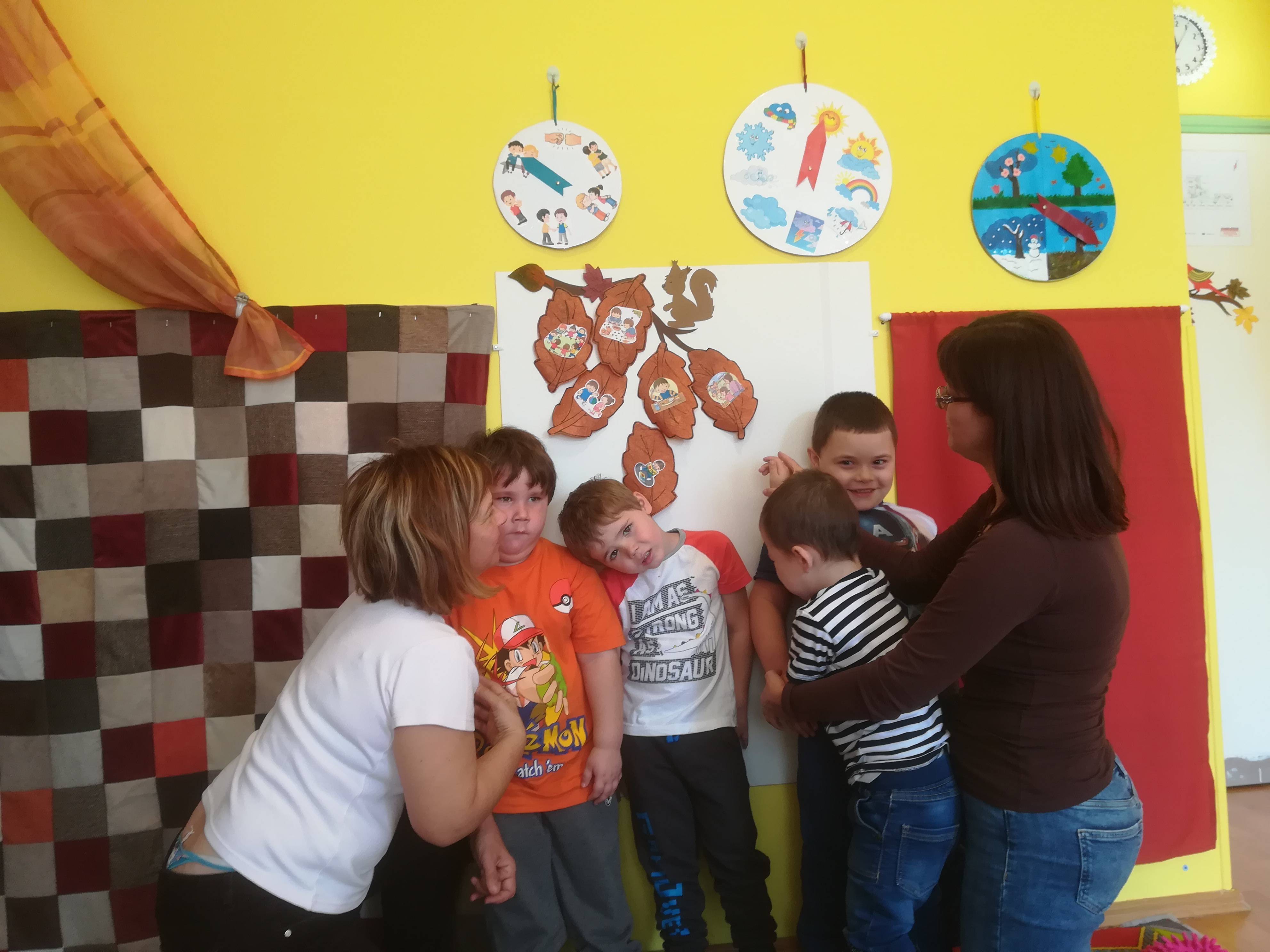 A Református EGYMI Kiskunhalasi Tagintézményének Mókuska csoportjával ez a második tanév, hogy csatlakoztunk a Boldogságóra programhoz. A csoport összetétele, a tavalyi évhez viszonyítva sokat változott, jelenleg 5 sajátos nevelési igényű gyermek jár, egyikük kommunikál verbálisan. A többi gyermekkel a képes kommunikációt, és a gesztusnyelvet gyakoroljuk. A gyermekek számára nehézséget jelent a rajzolás, ezért képek közül választották ki, hogy ki miért hálás. Közben többször meghallgattuk a témához kapcsolódó dalt. A csoport minden kis mókusa nagyon szeret sétálni, leveleket gyűjtögetni, ezért papír levelekre ragasztottuk, hogy ki miért hálás, majd a leveleket a tablón egy faágra rögzítettük. Így lett egy őszi hálalevelekkel teli faágunk.